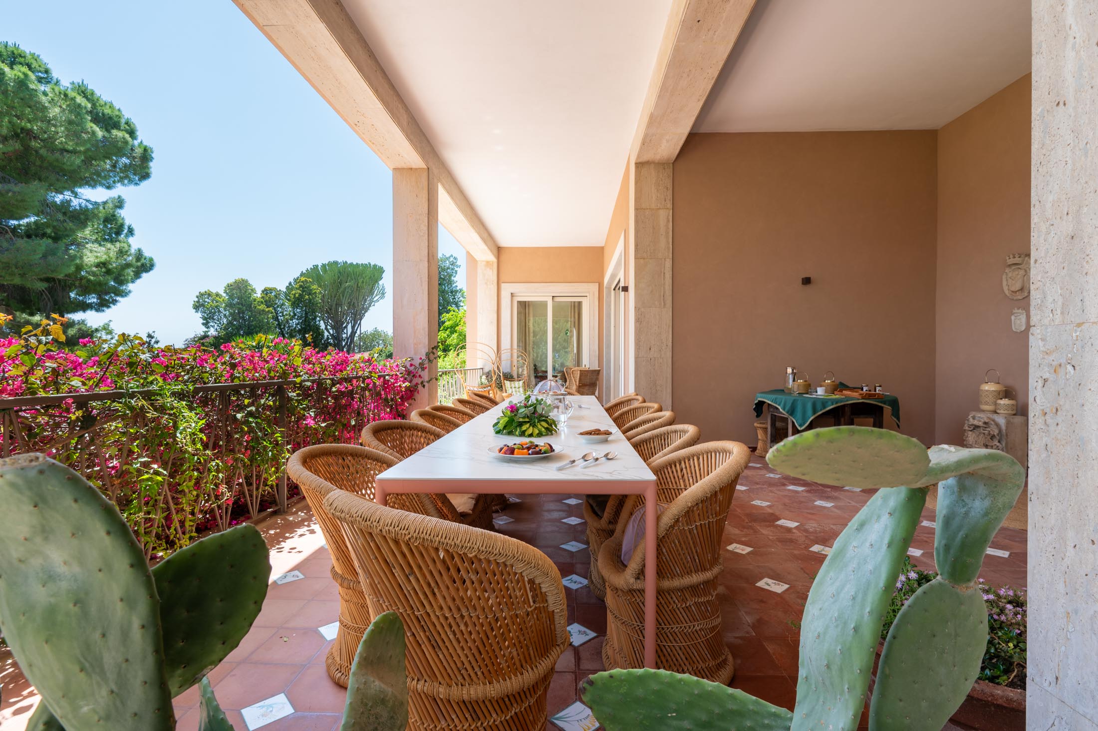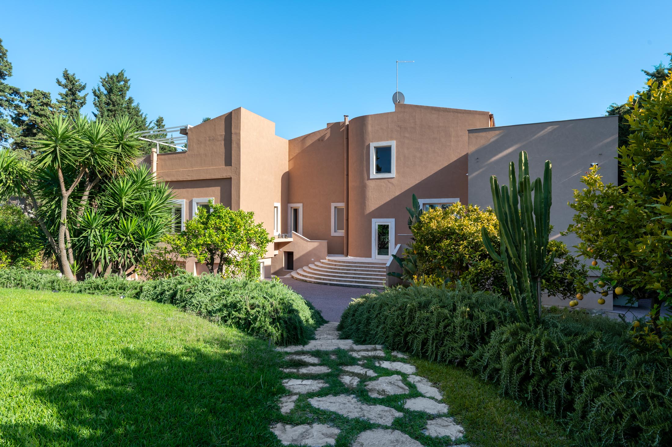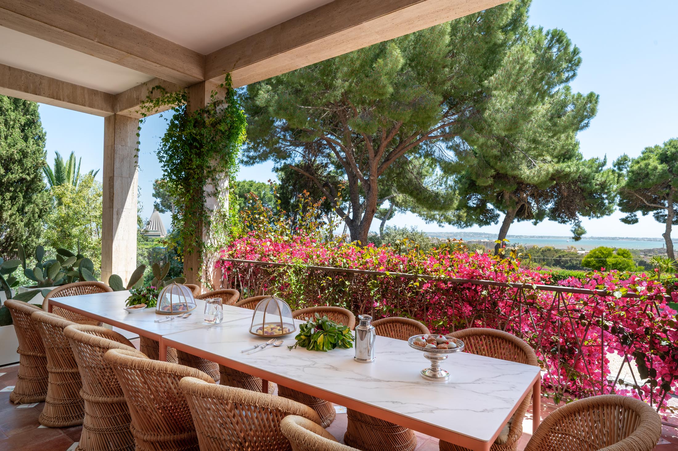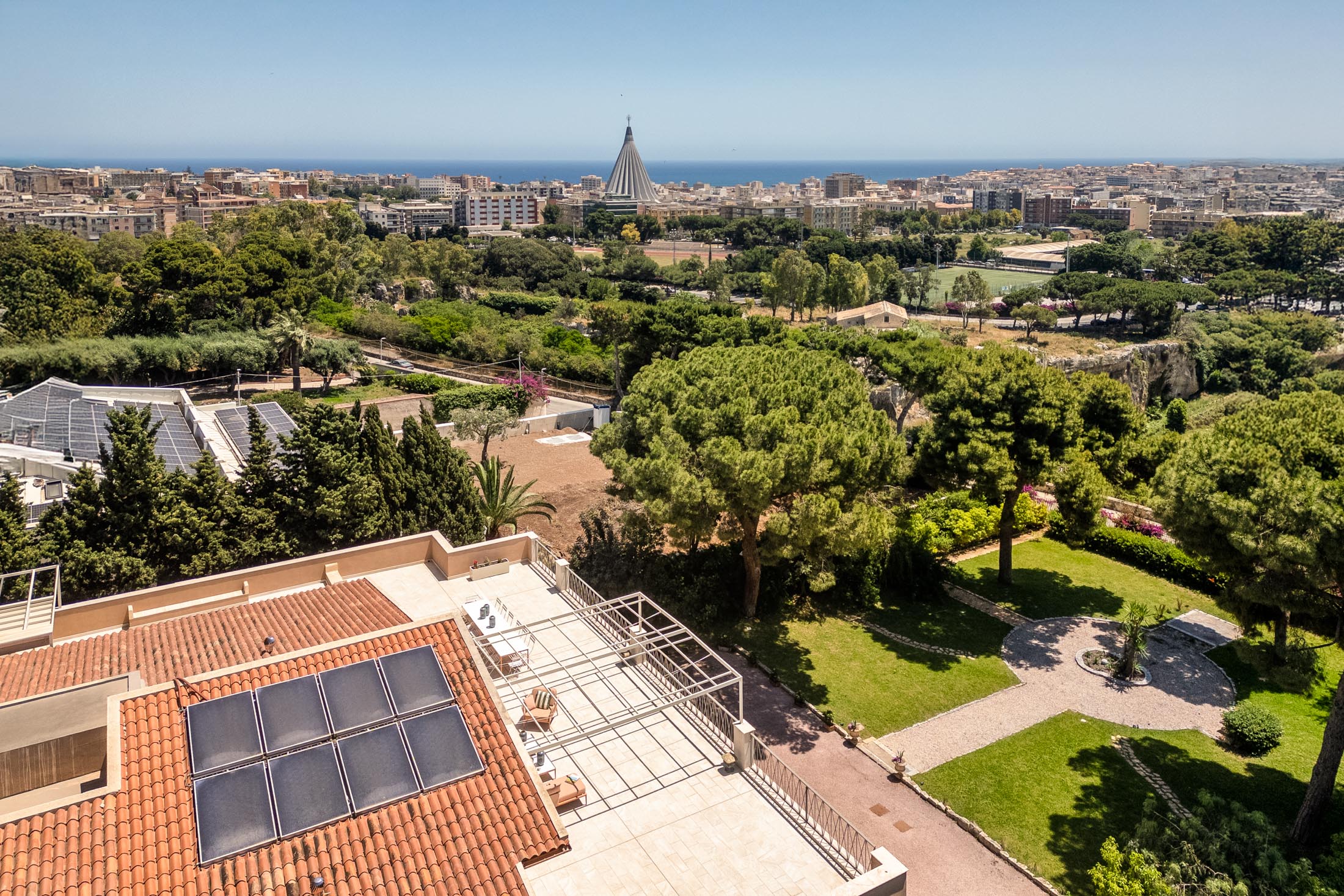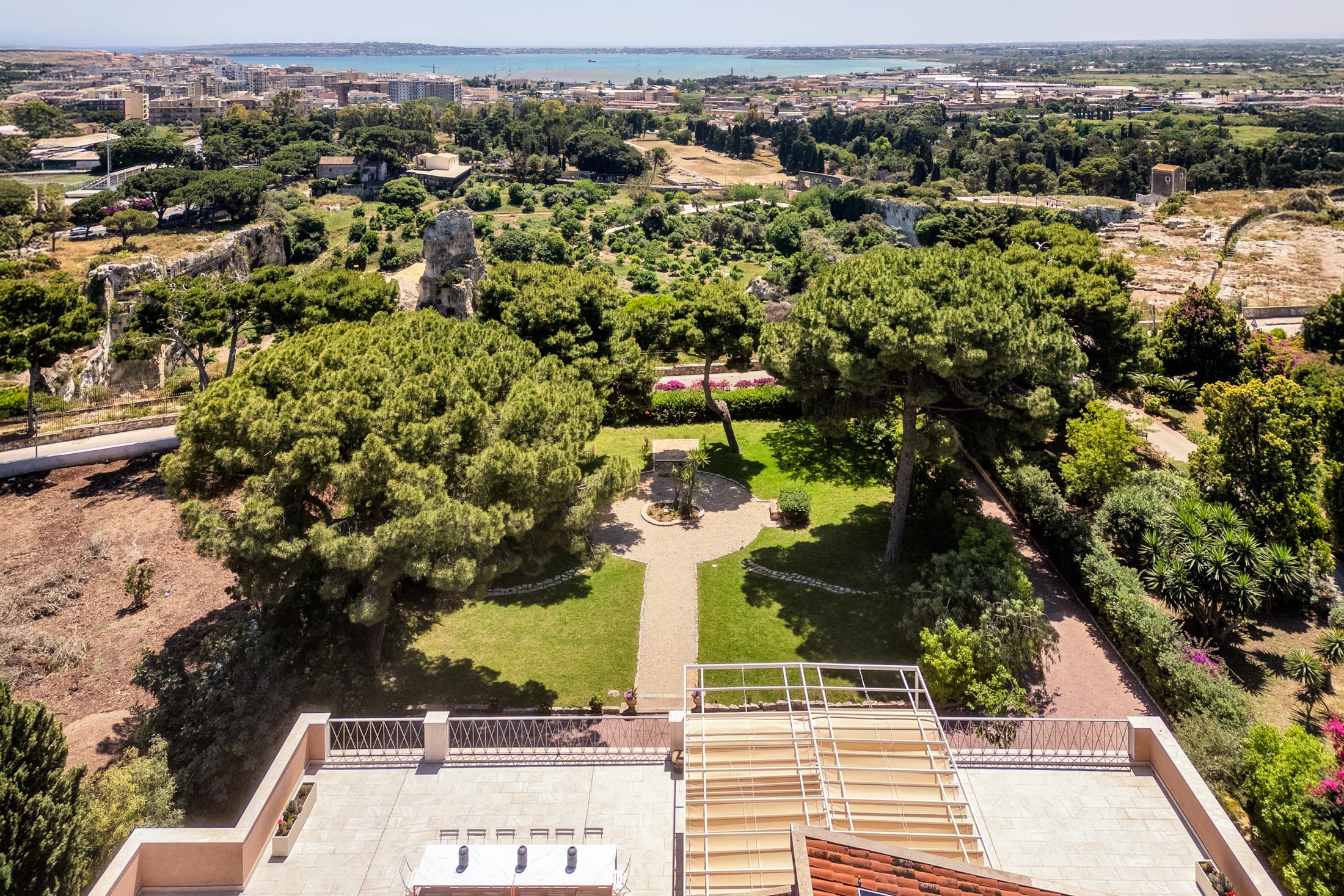 This villa in Siracusa enjoys a privileged setting in the evocative Neapolis archaeological area, dating back to the 5th century BC, when the city was one of the capitals of Magna Graecia.