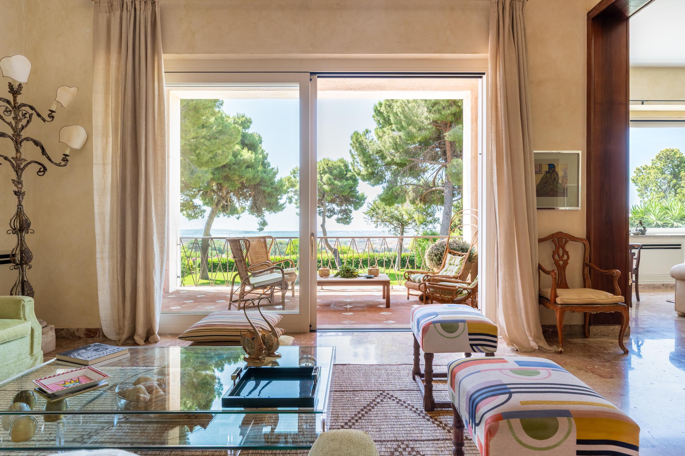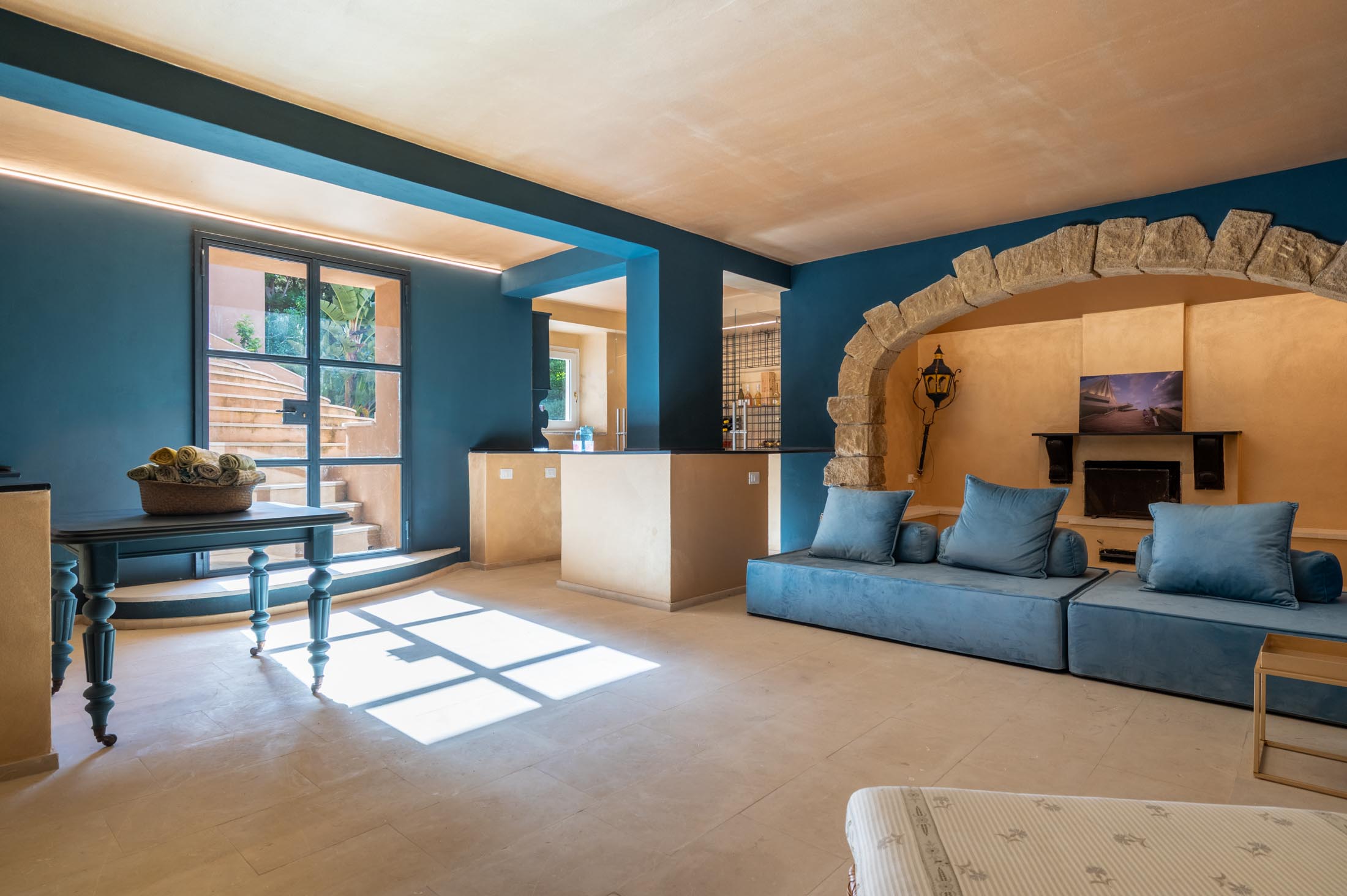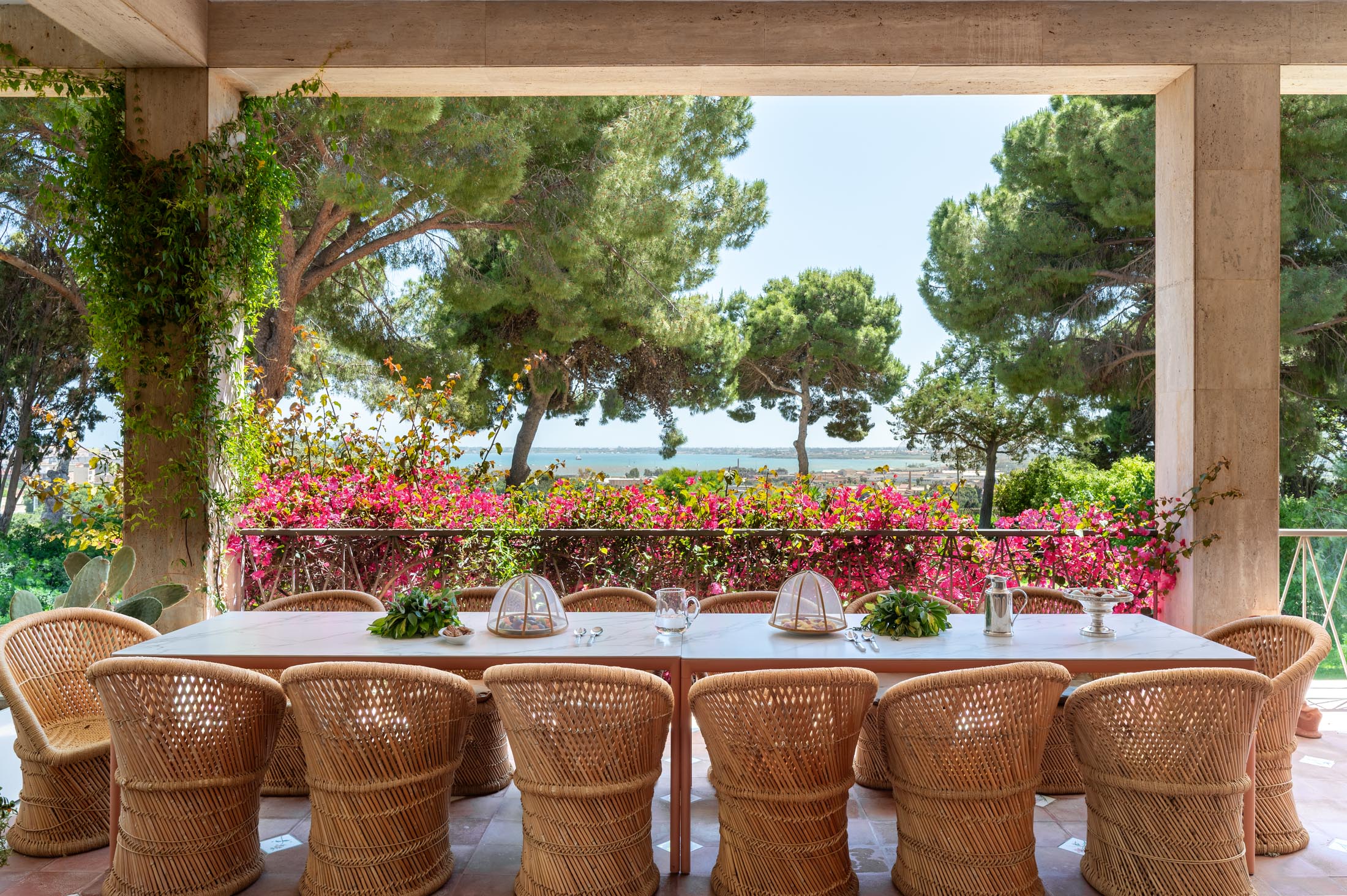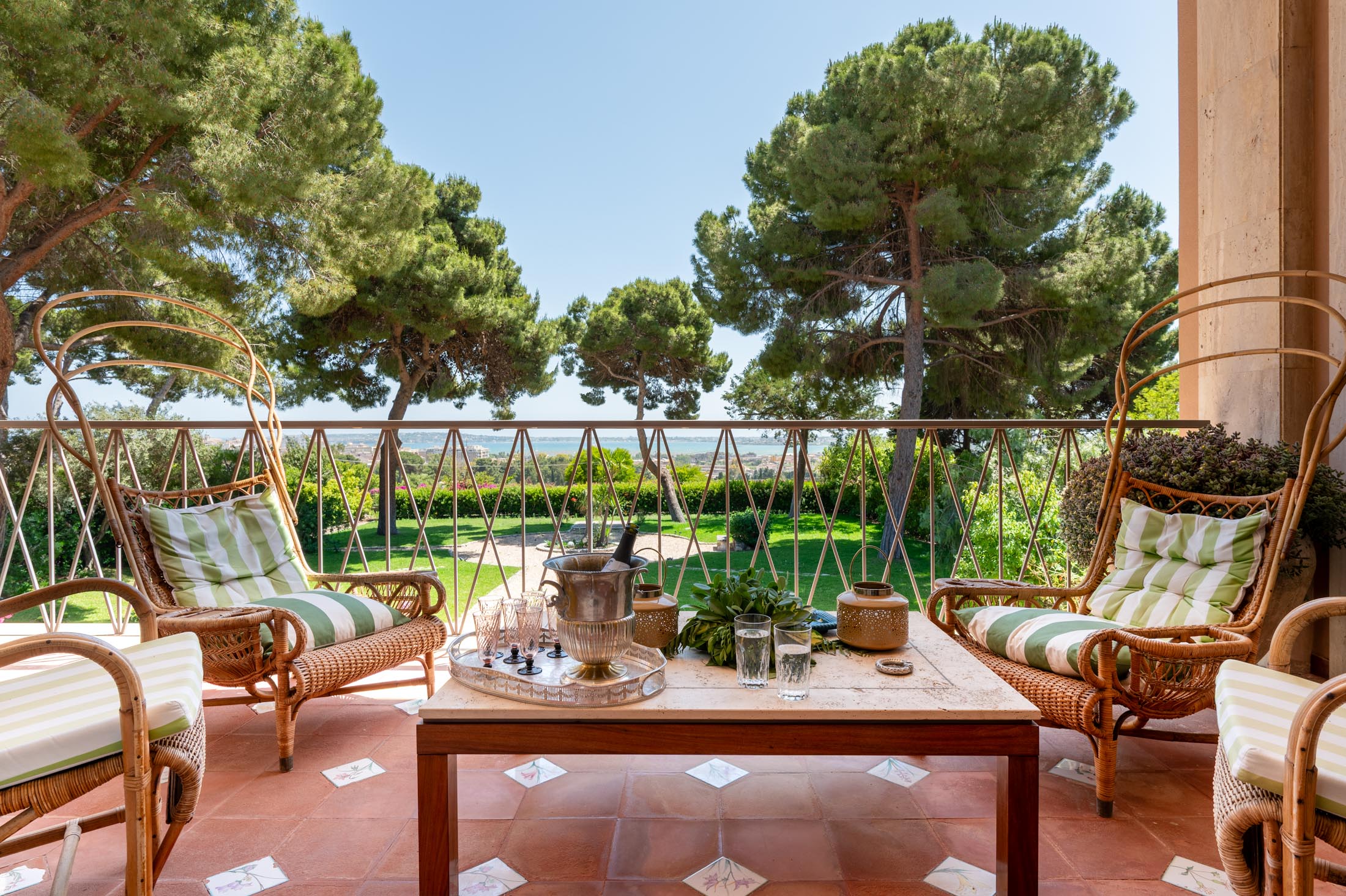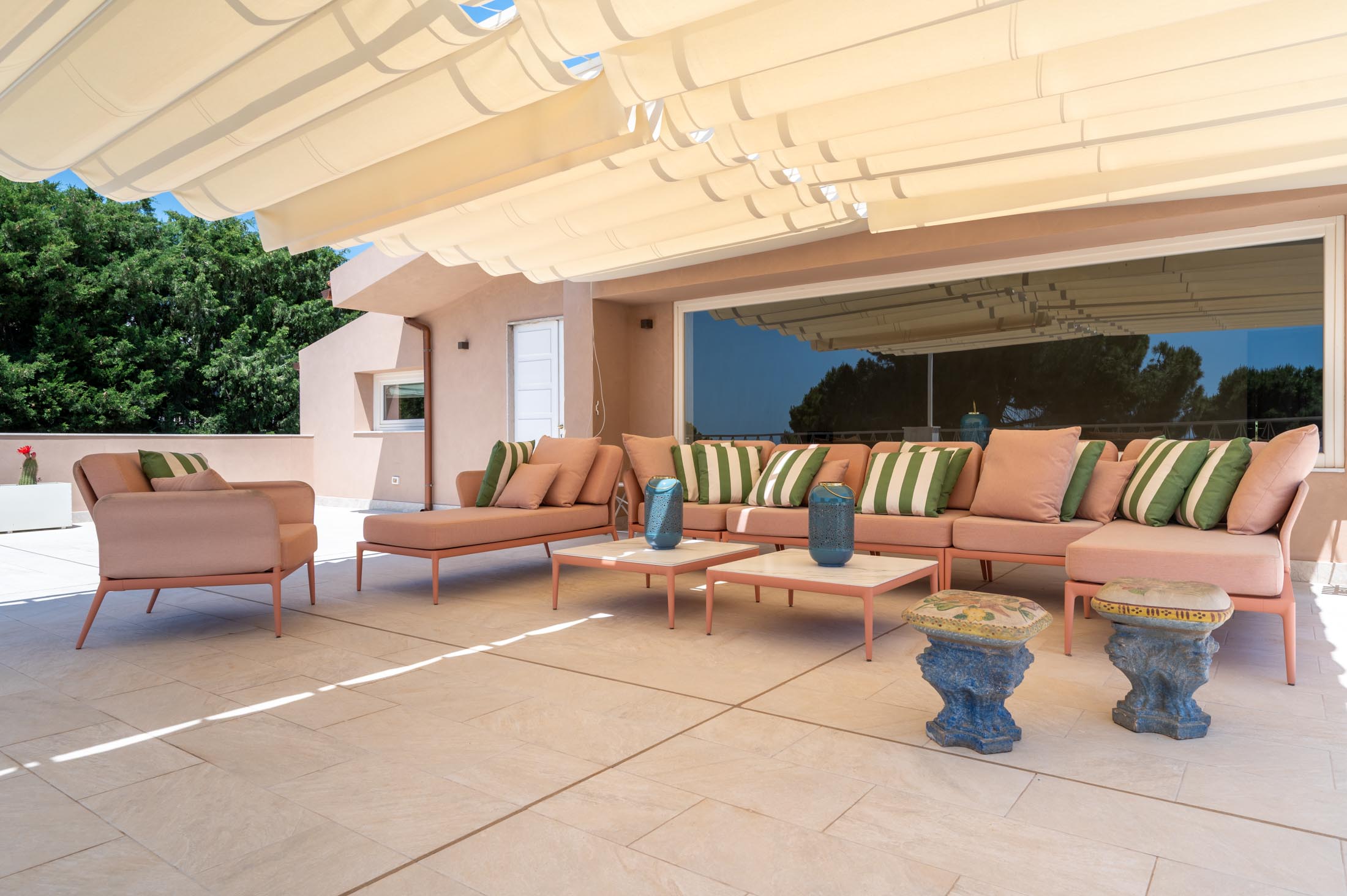 This villa in Siracusa enjoys a privileged setting in the evocative Neapolis archaeological area, dating back to the 5th century BC, when the city was one of the capitals of Magna Graecia.