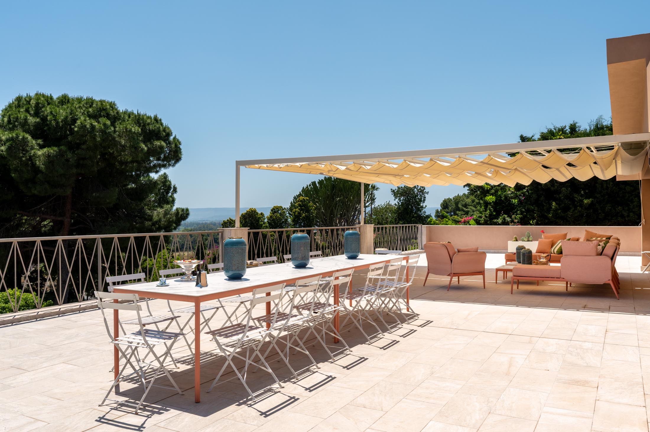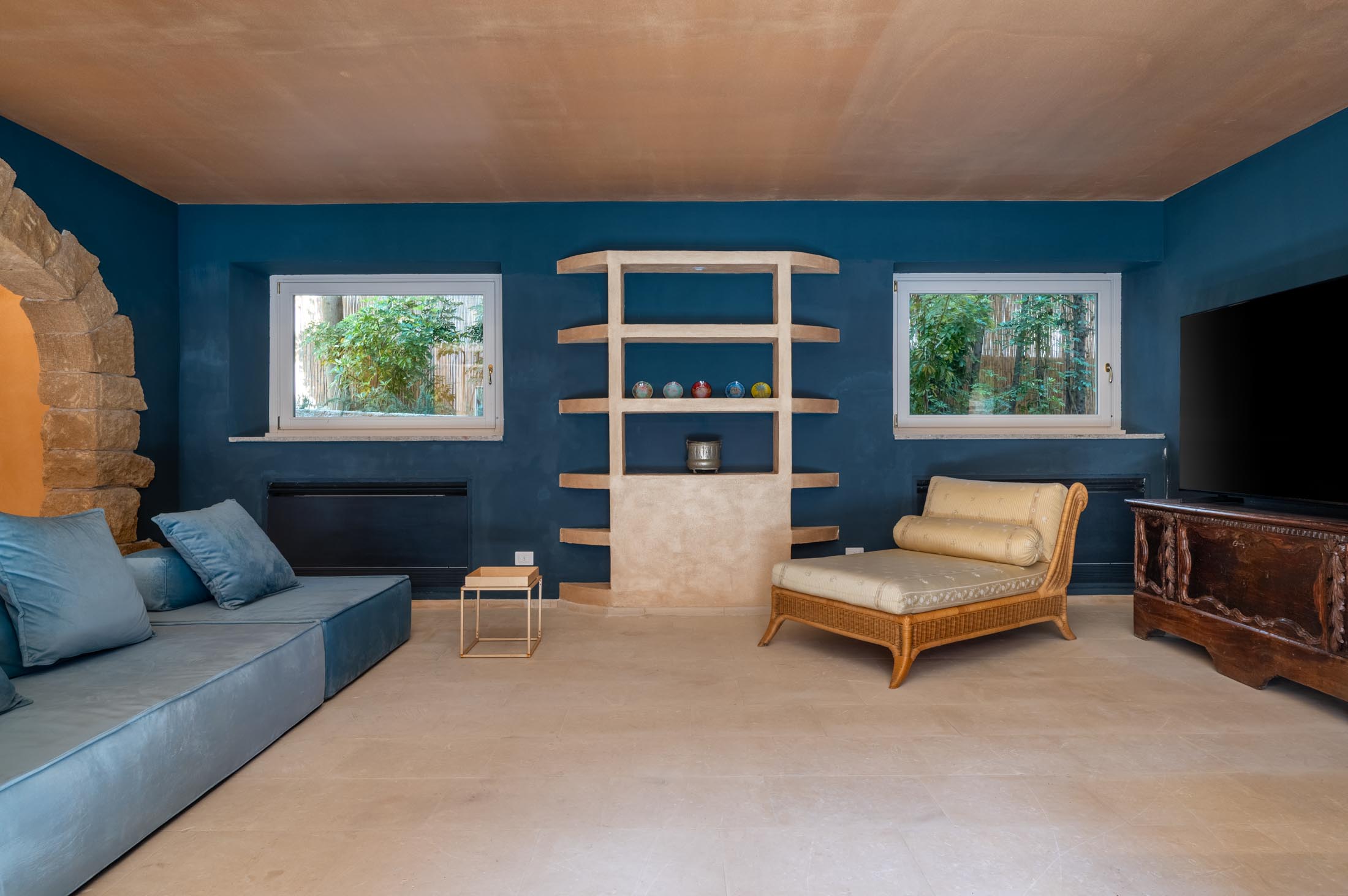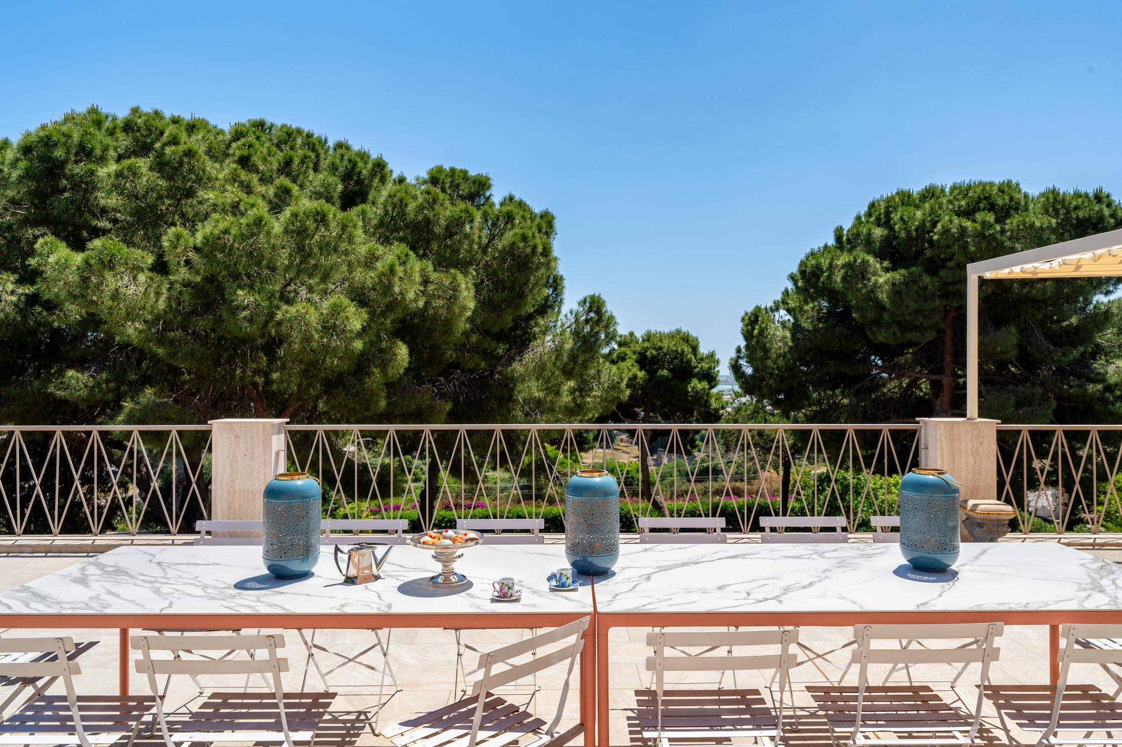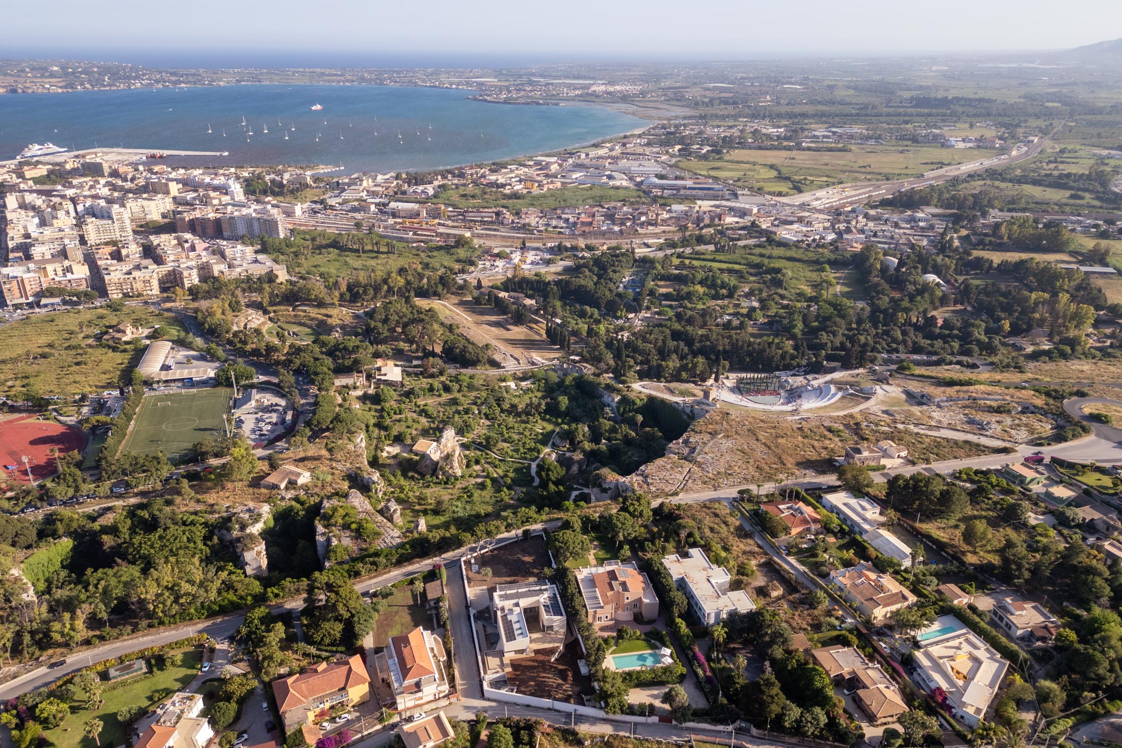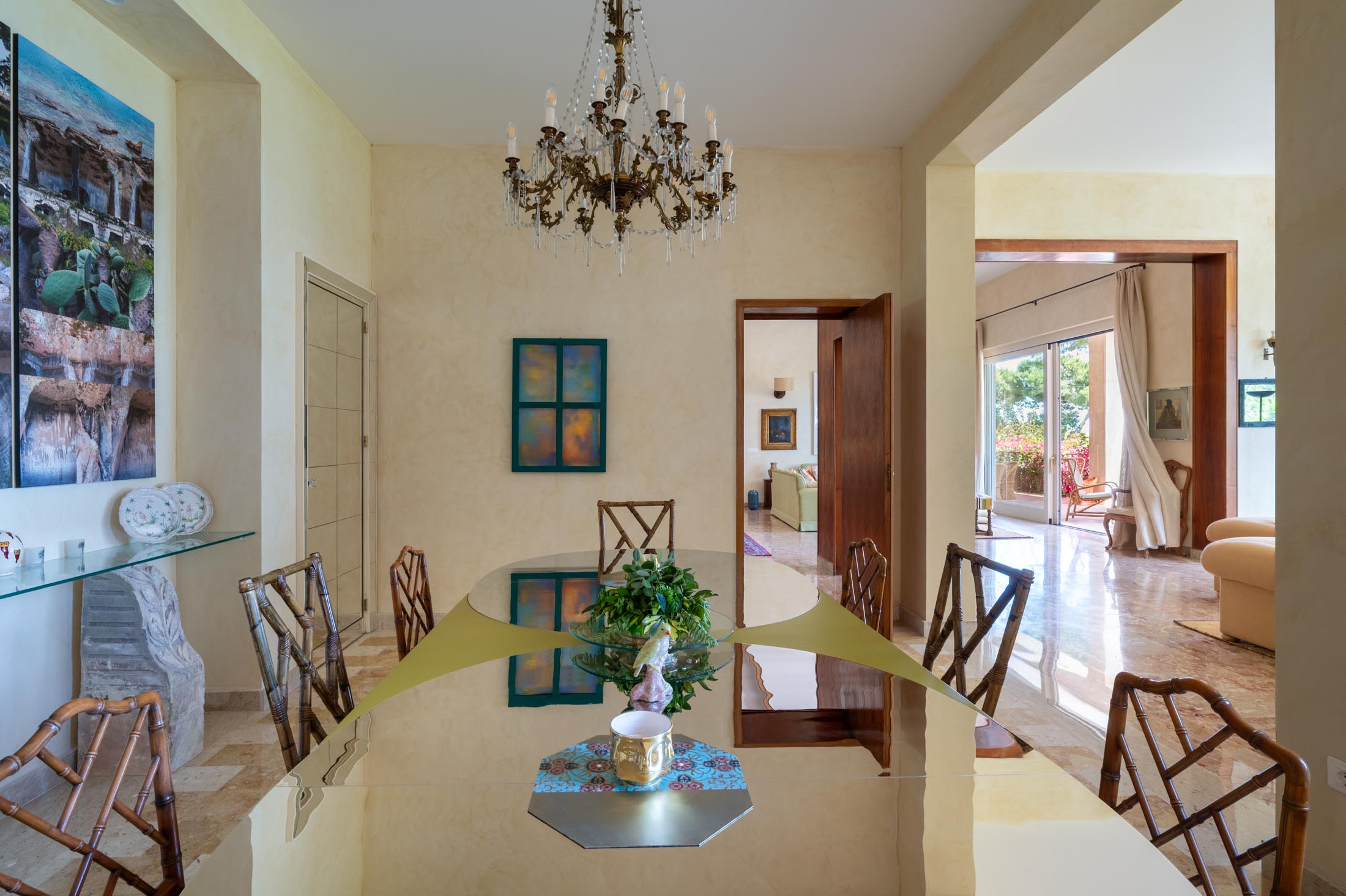This villa in Siracusa enjoys a privileged setting in the evocative Neapolis archaeological area, dating back to the 5th century BC, when the city was one of the capitals of Magna Graecia.