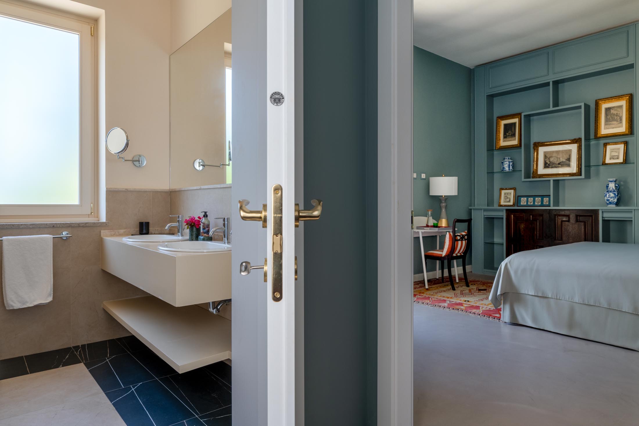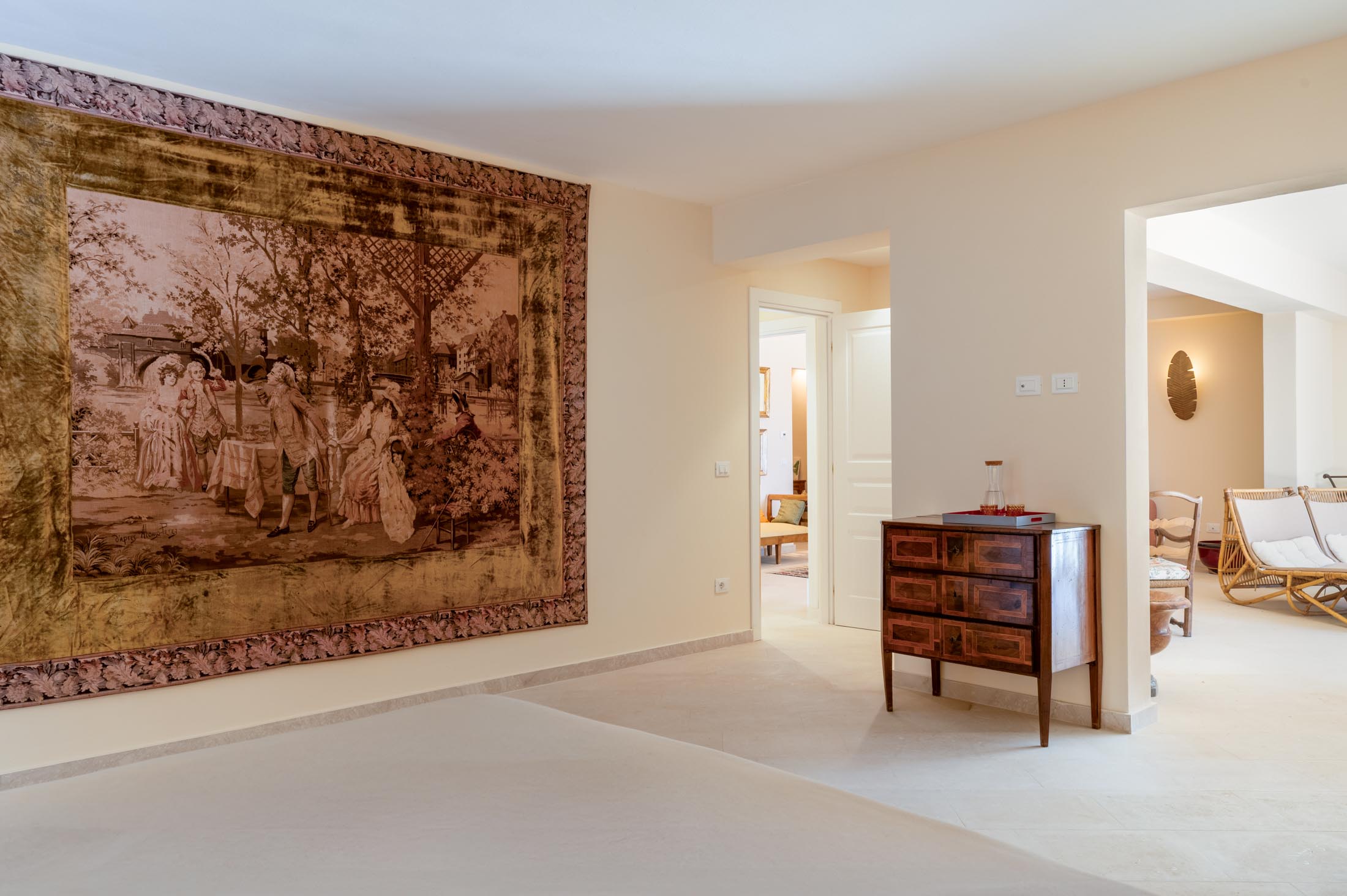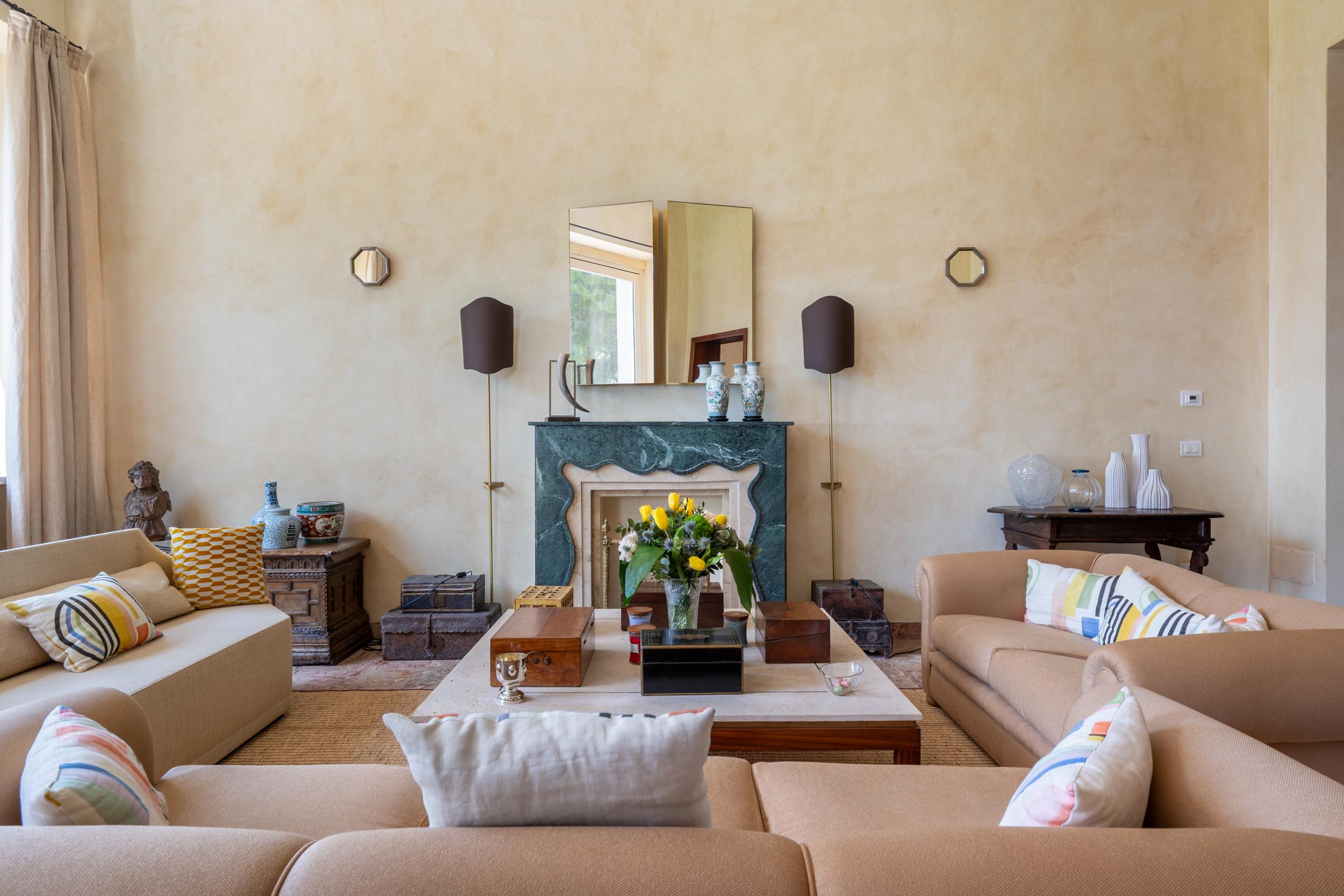 The property has been carefully designed to blend the charm of the original historic villa with refined contemporary elements, including custom-made furnishings and curated modern artworks.