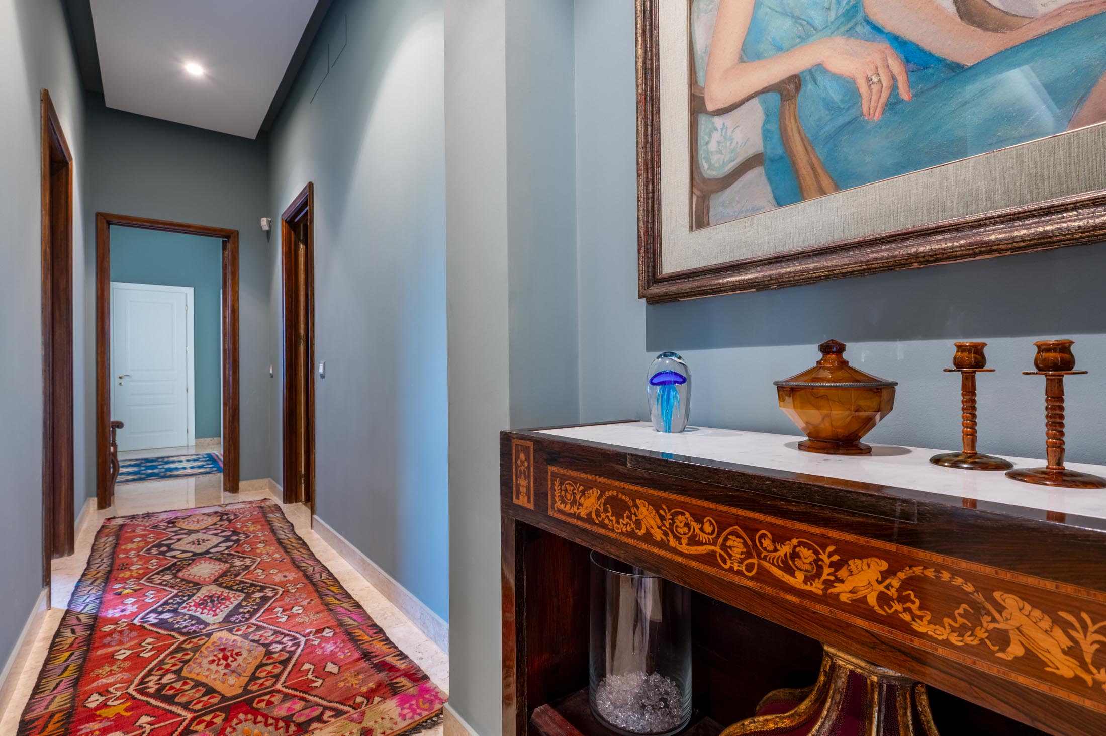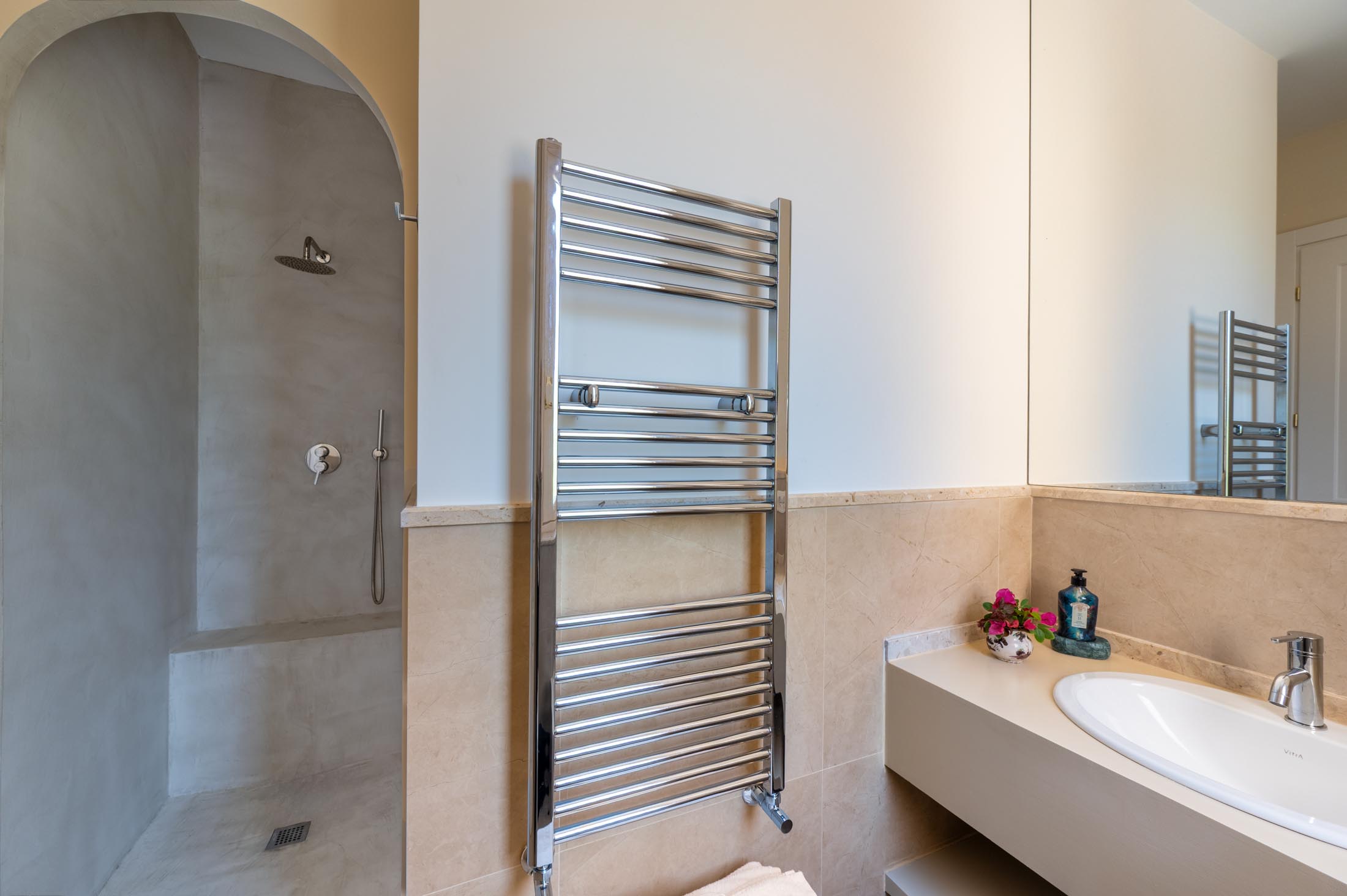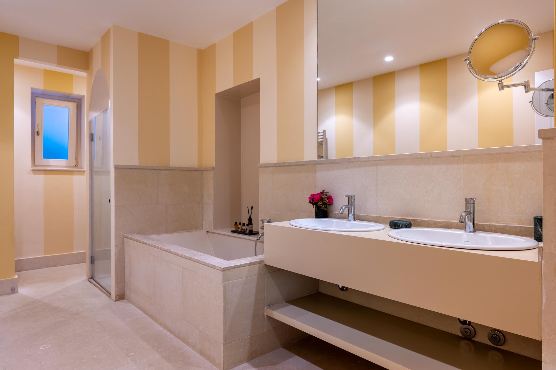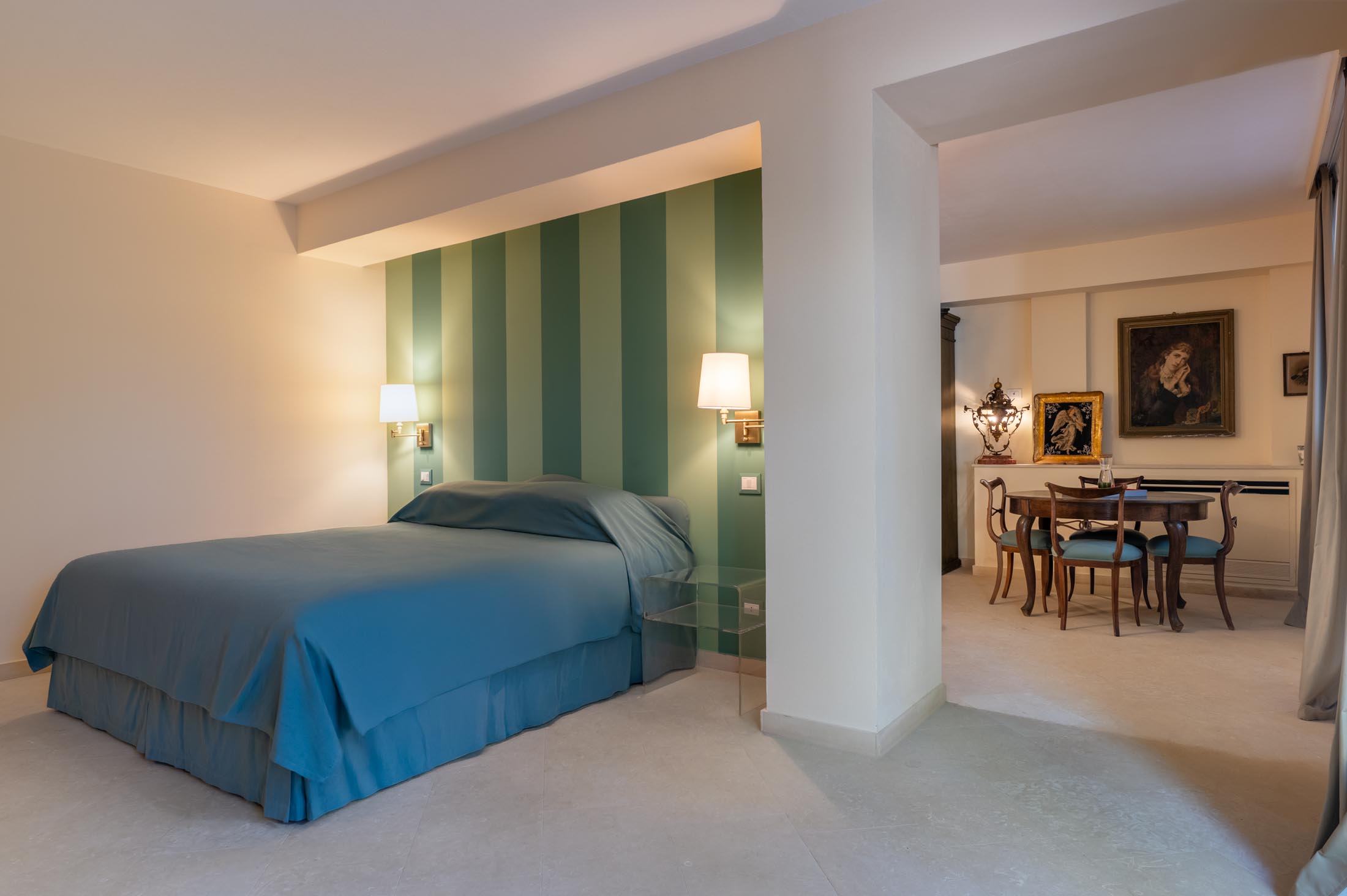 The property has been carefully designed to blend the charm of the original historic villa with refined contemporary elements, including custom-made furnishings and curated modern artworks.