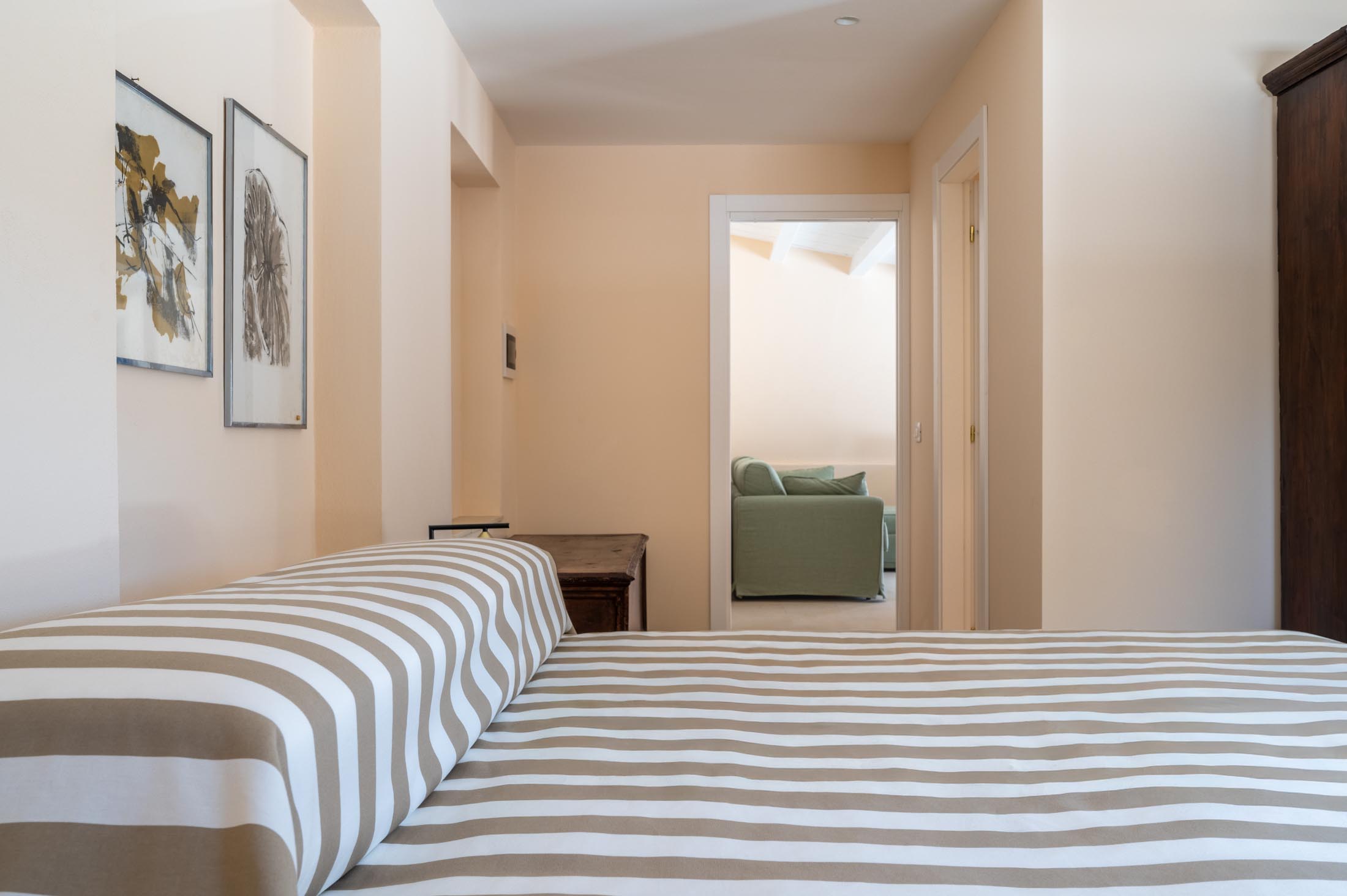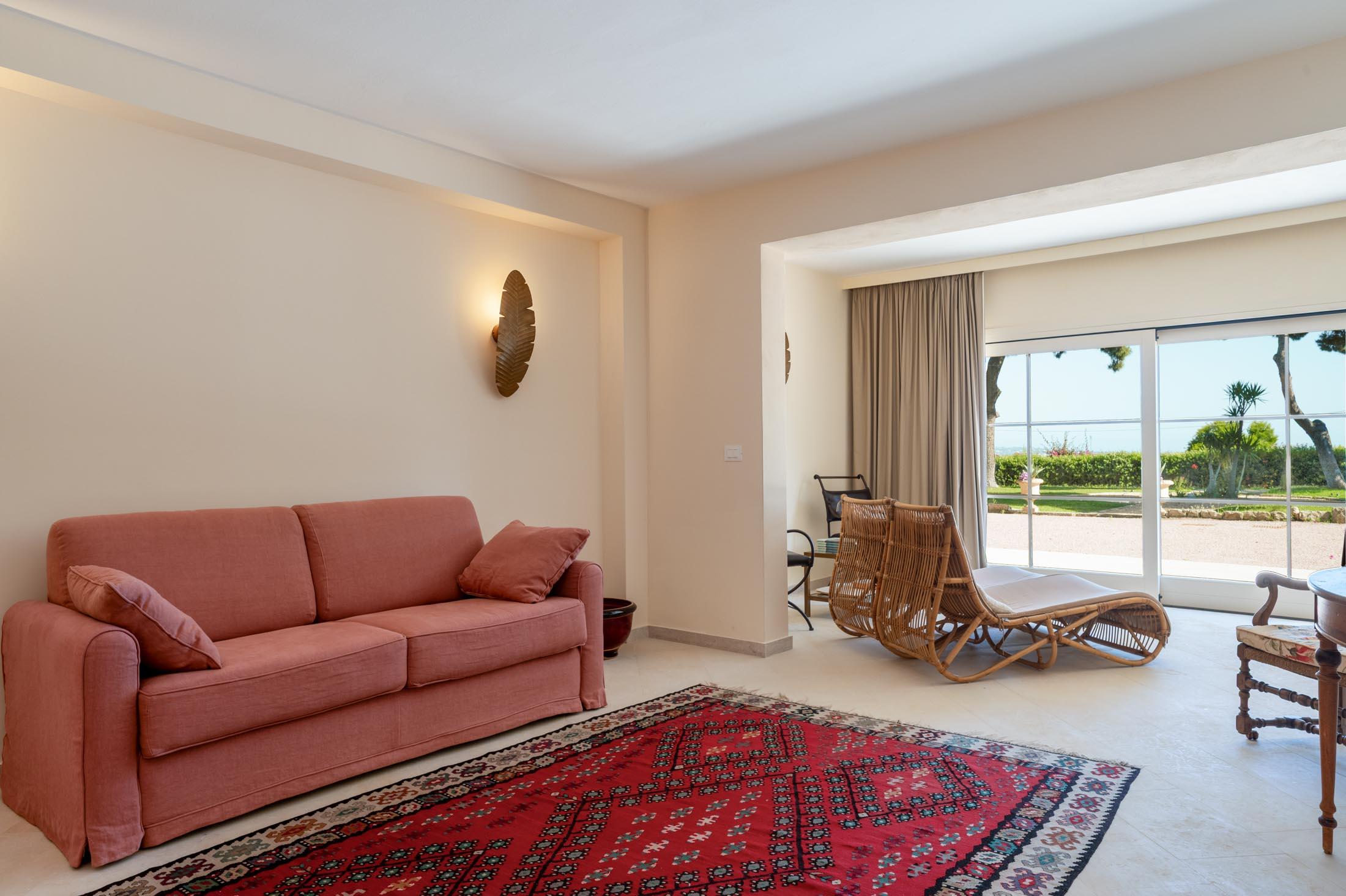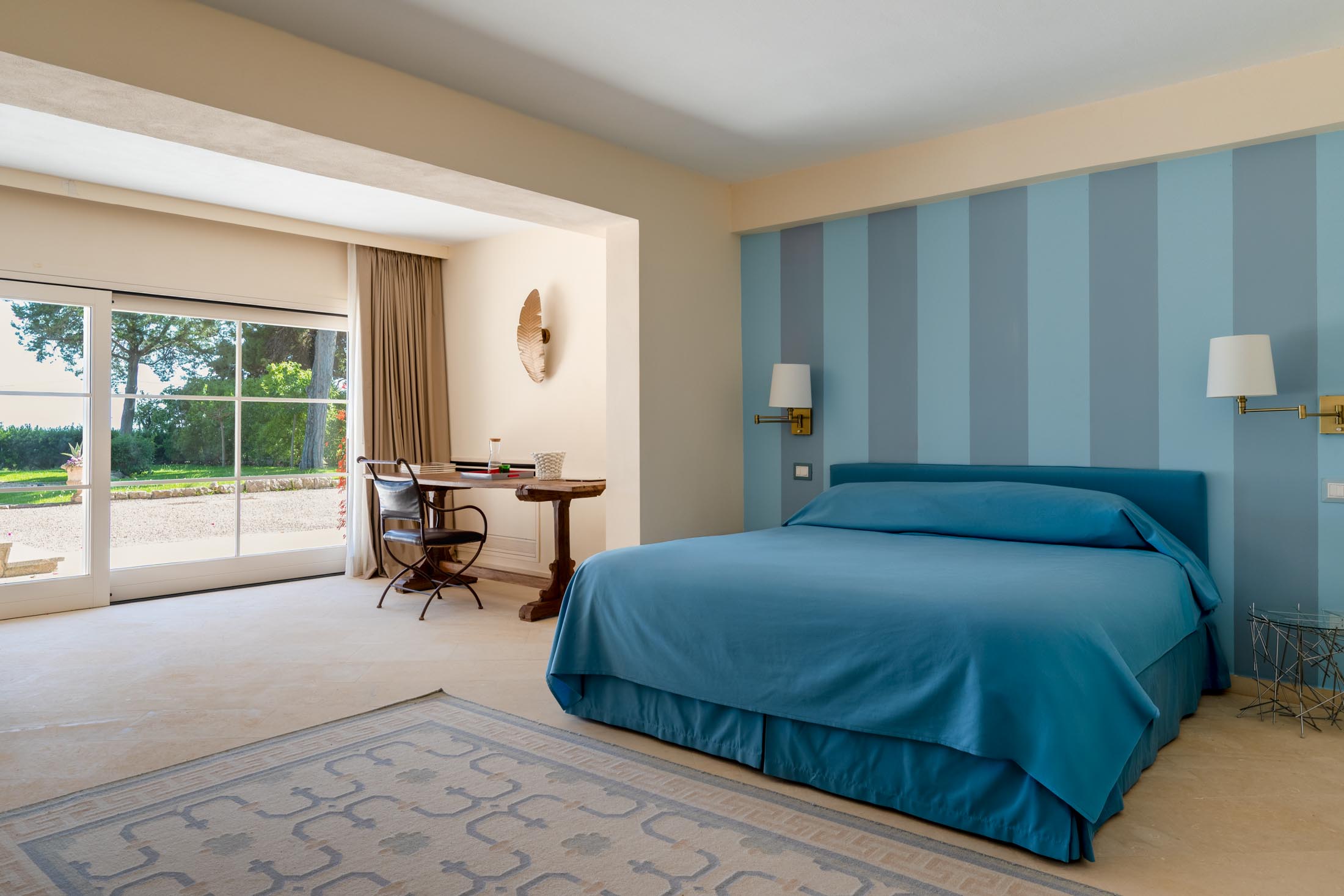 On the same floor, two suites and additional bedrooms offer private bathrooms, terraces, and direct garden access. Each sleeping area is thoughtfully separated from the common spaces to ensure maximum privacy for guests.
