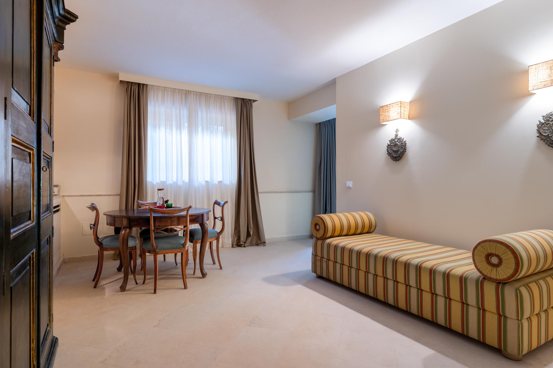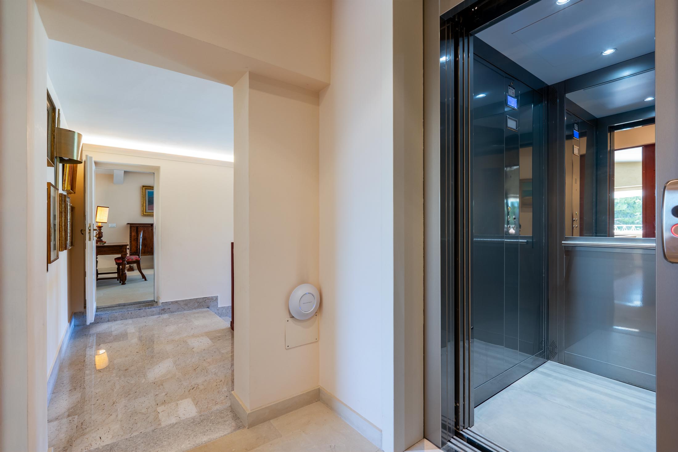 Ambasciata del Sud combines imposing elegance with an exceptionally welcoming atmosphere. The property features two driveway entrances to the park and extends across three floors, connected by both an elevator and an internal staircase.