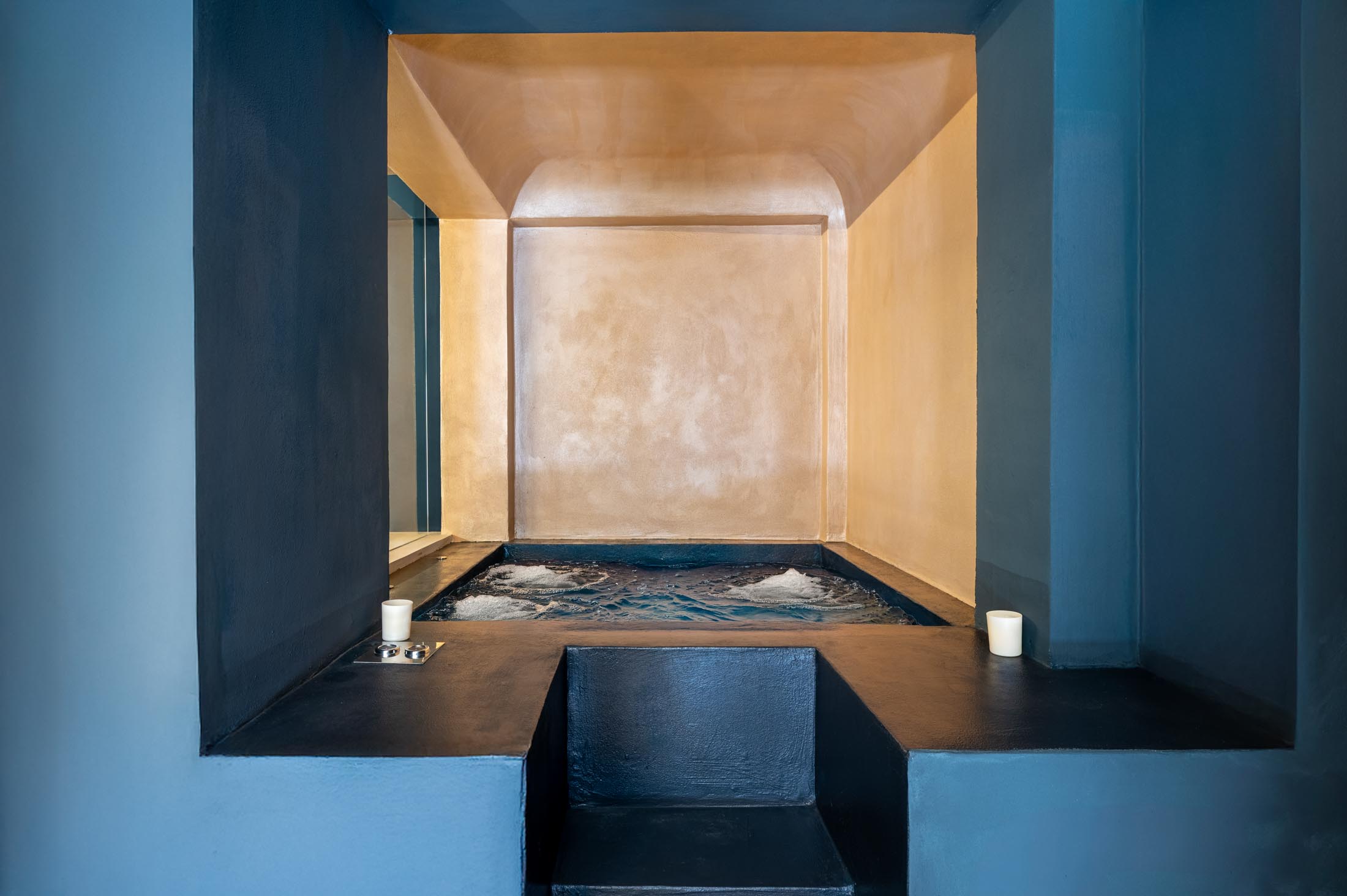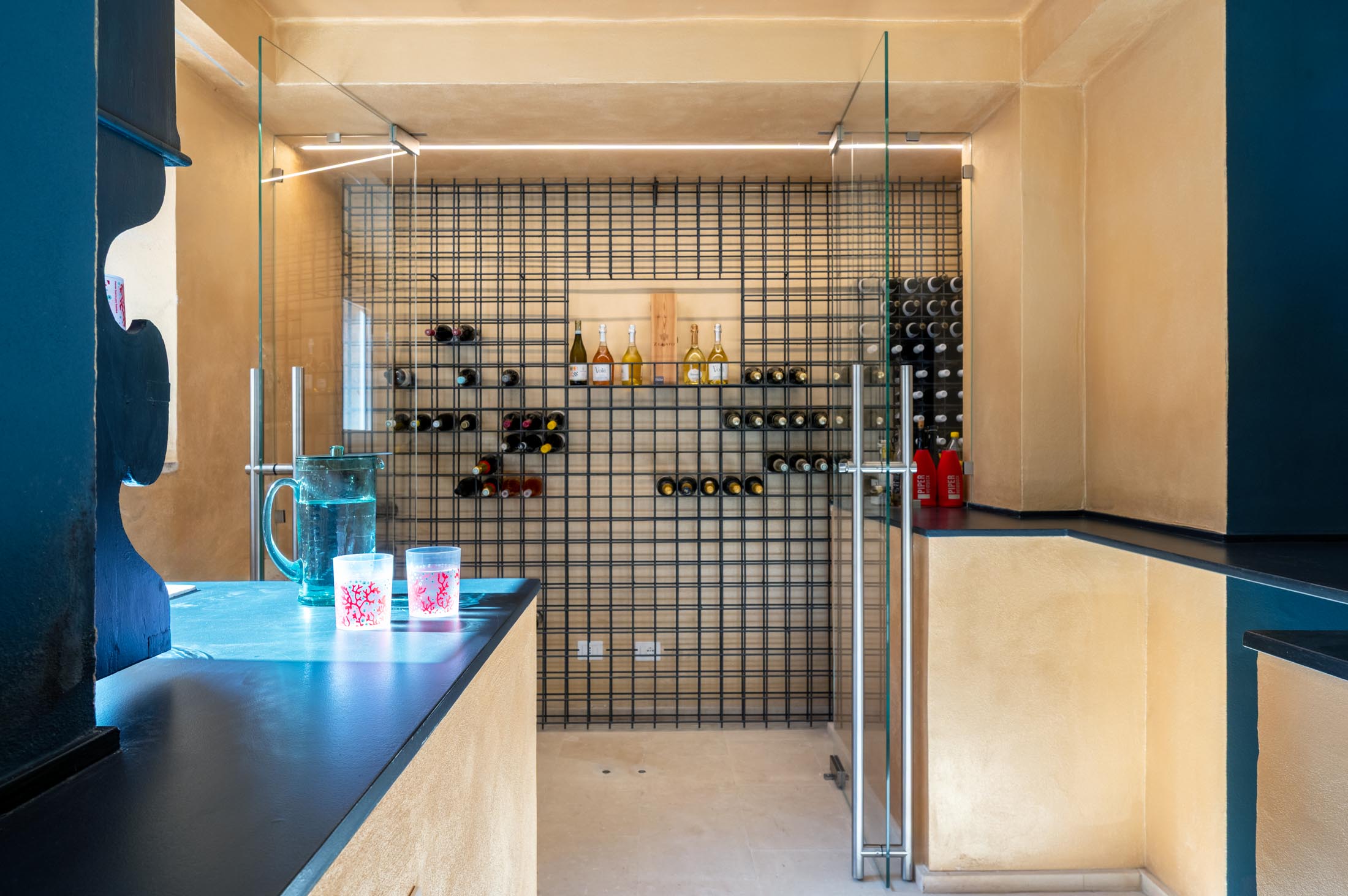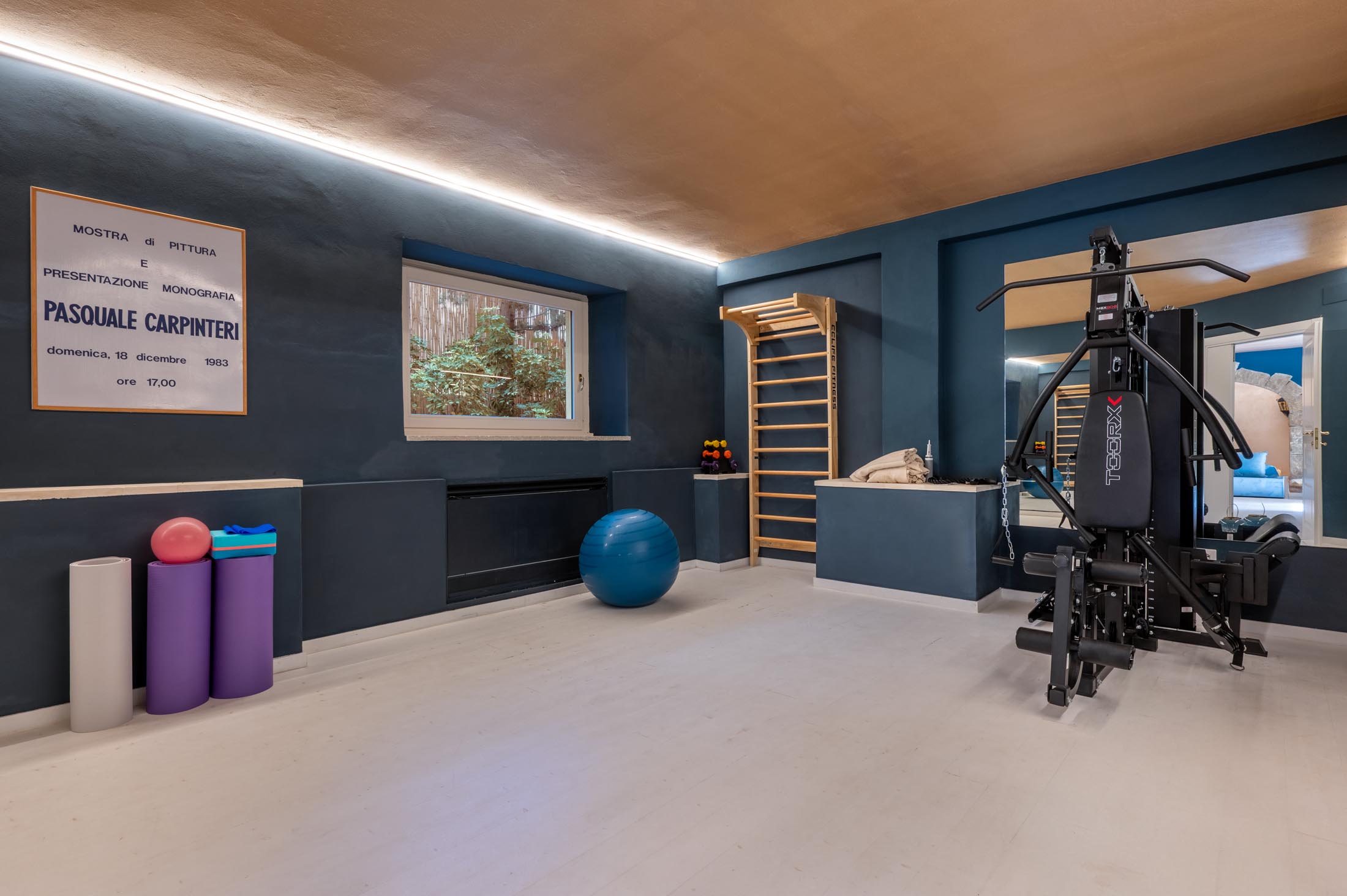 On the ground floor, two large bedrooms with private bathrooms and living areas open onto the Italian garden. This level also includes a gym, sauna, hydromassage tub, and a relaxation area with a chaise longue and large television. In the adjacent garden, guests will find a bar, a well-stocked cellar, and direct access to the swimming pool.