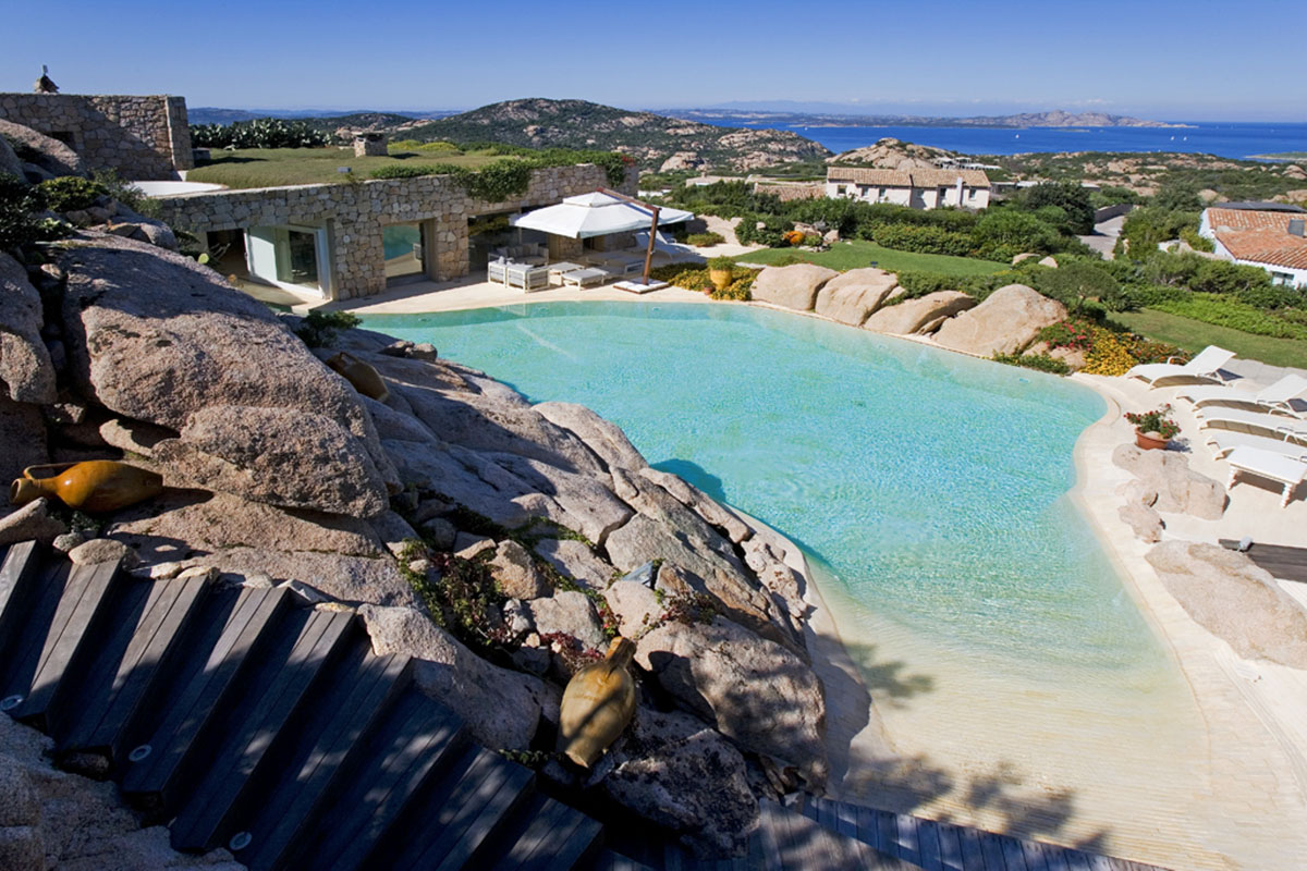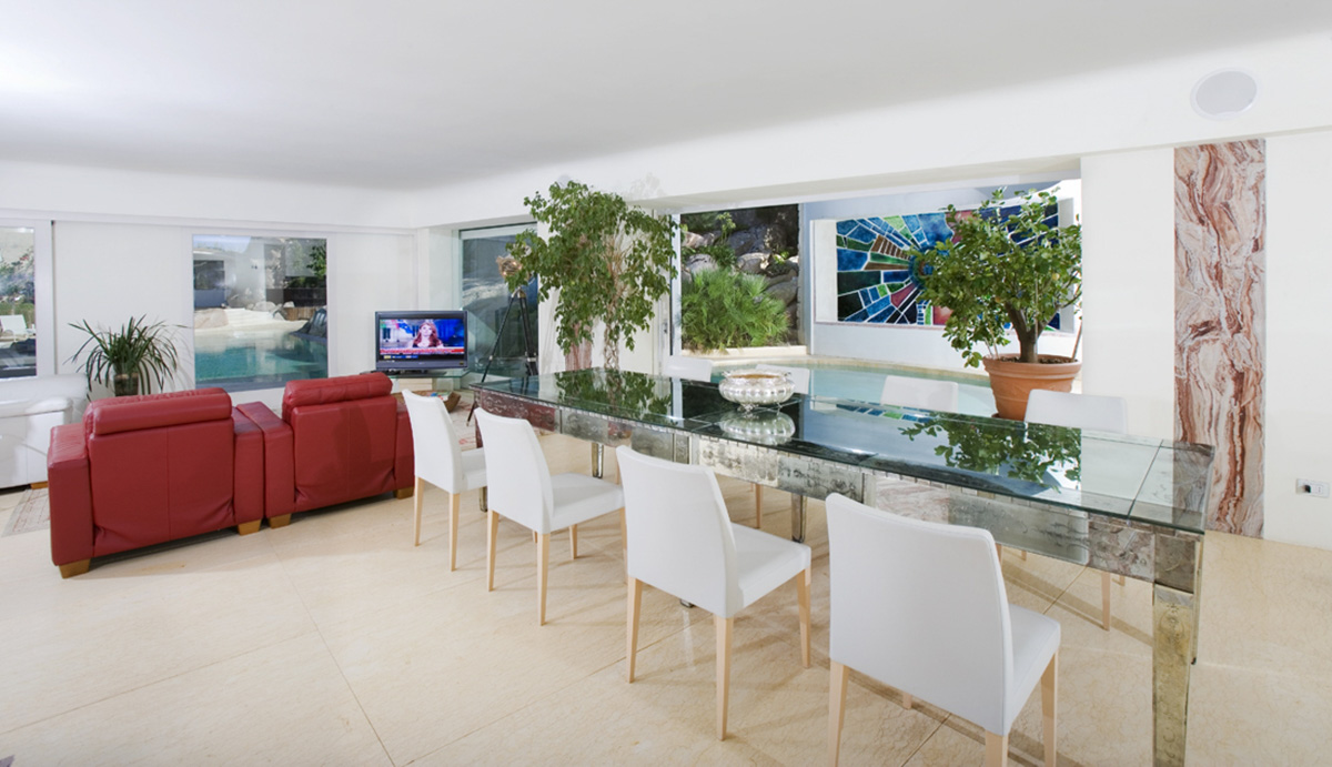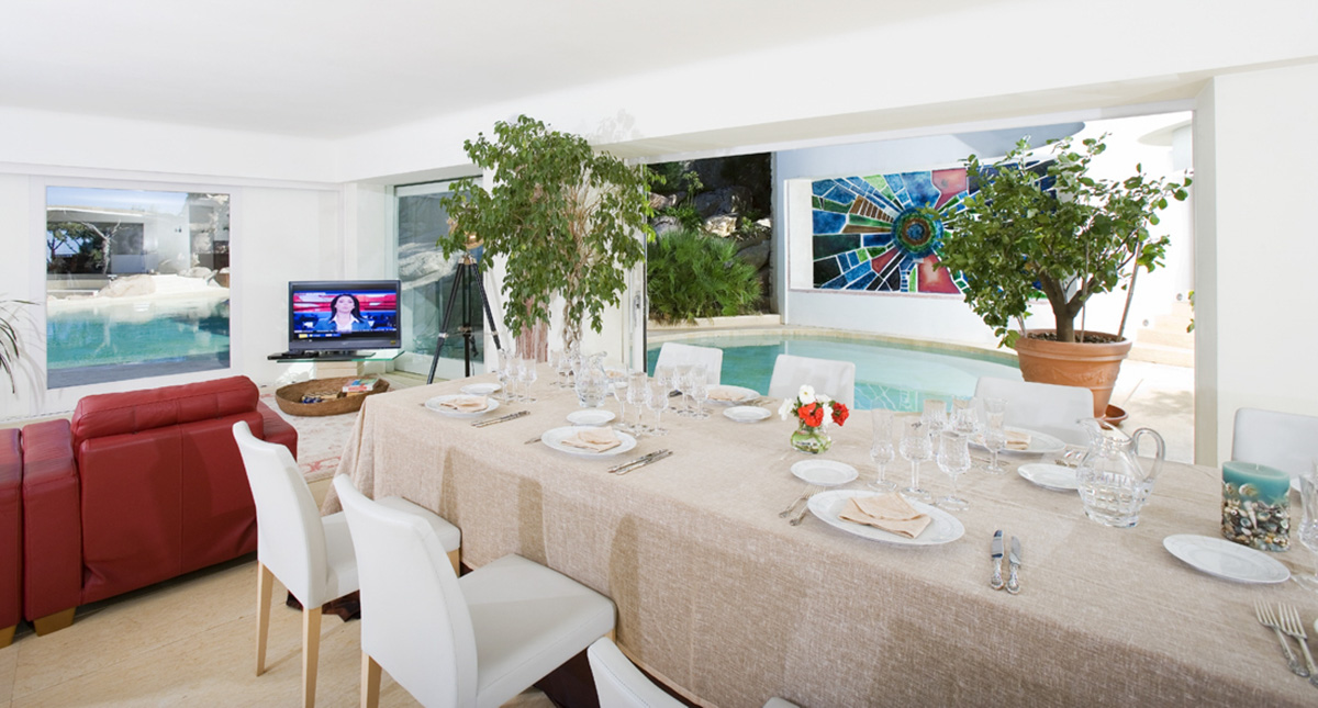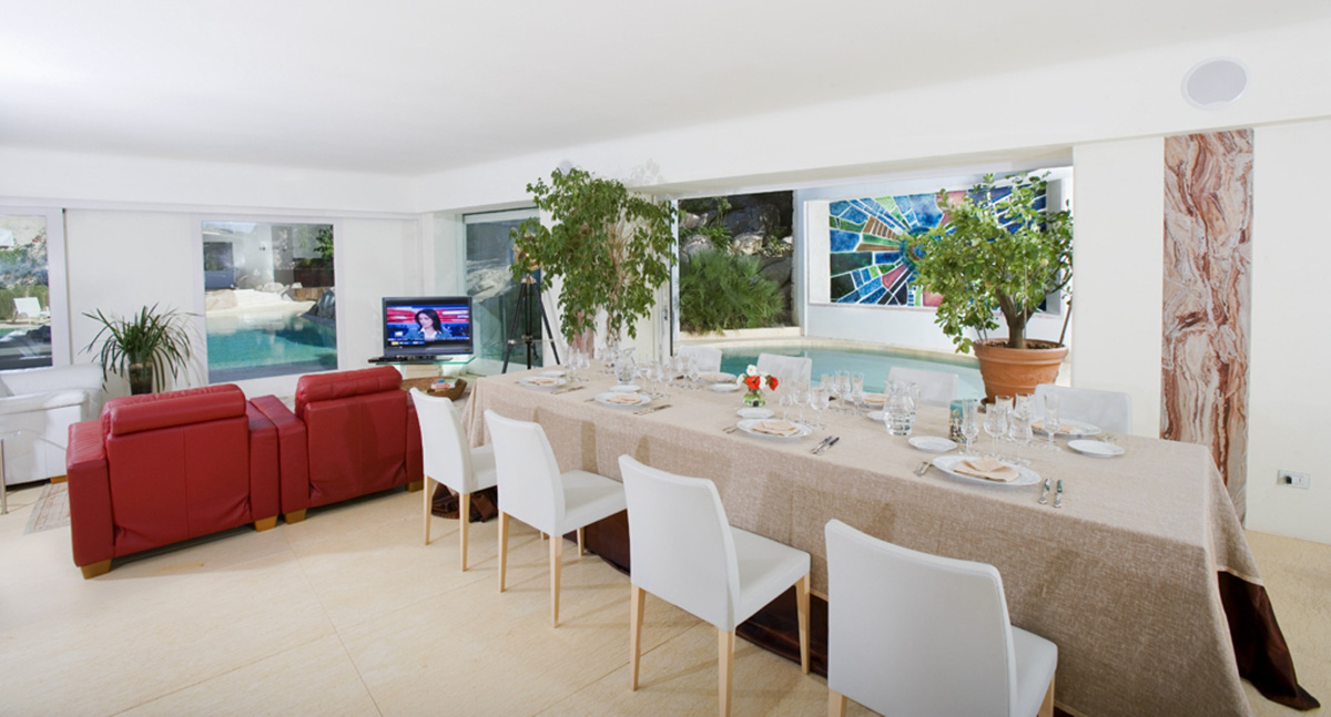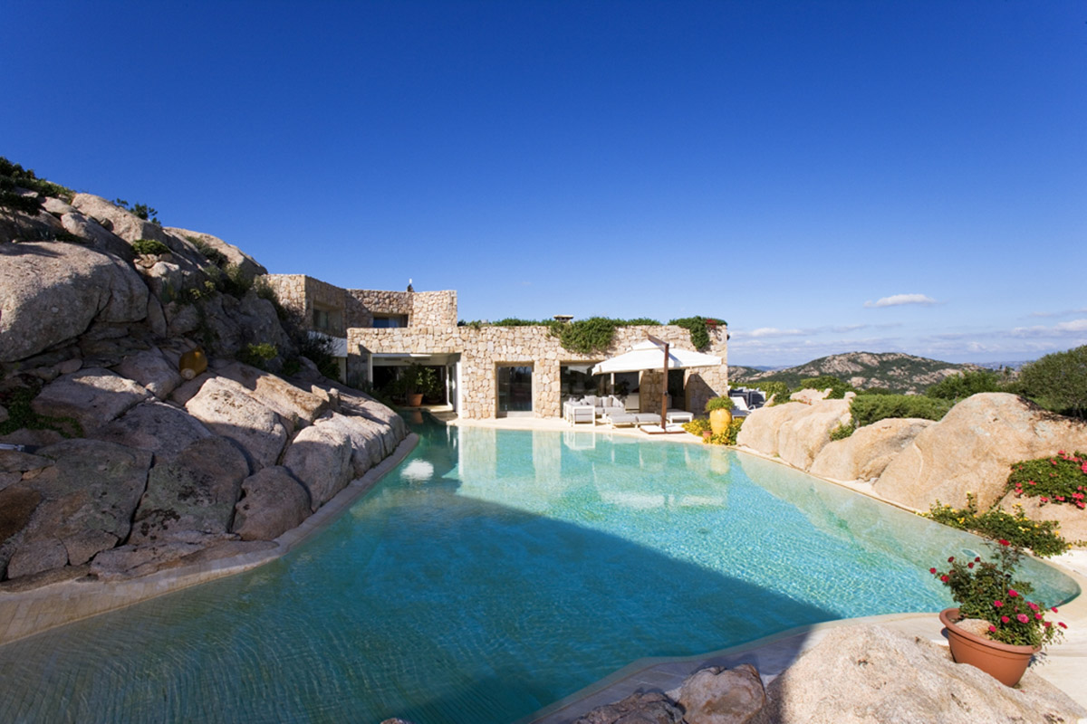 This villa is located on the hill of Porto Cervo, in a dominant position amidst granite rocks and pretty flora just above the Pitrizza white sandy beach. Divided into three parts- a Master Unit, a Tower Major Suite and a Guest House, all with fabulous sea-views, all set in extensive manicured gardens and around a huge centrally located irregular shaped swimming pool. The interiors are crisp, with clean lines and an immaculate finish which when coupled with large floor to ceiling windows creates a spacious, ligh filled, ambient idyll that fuses the sparkling interior and exterior environments.