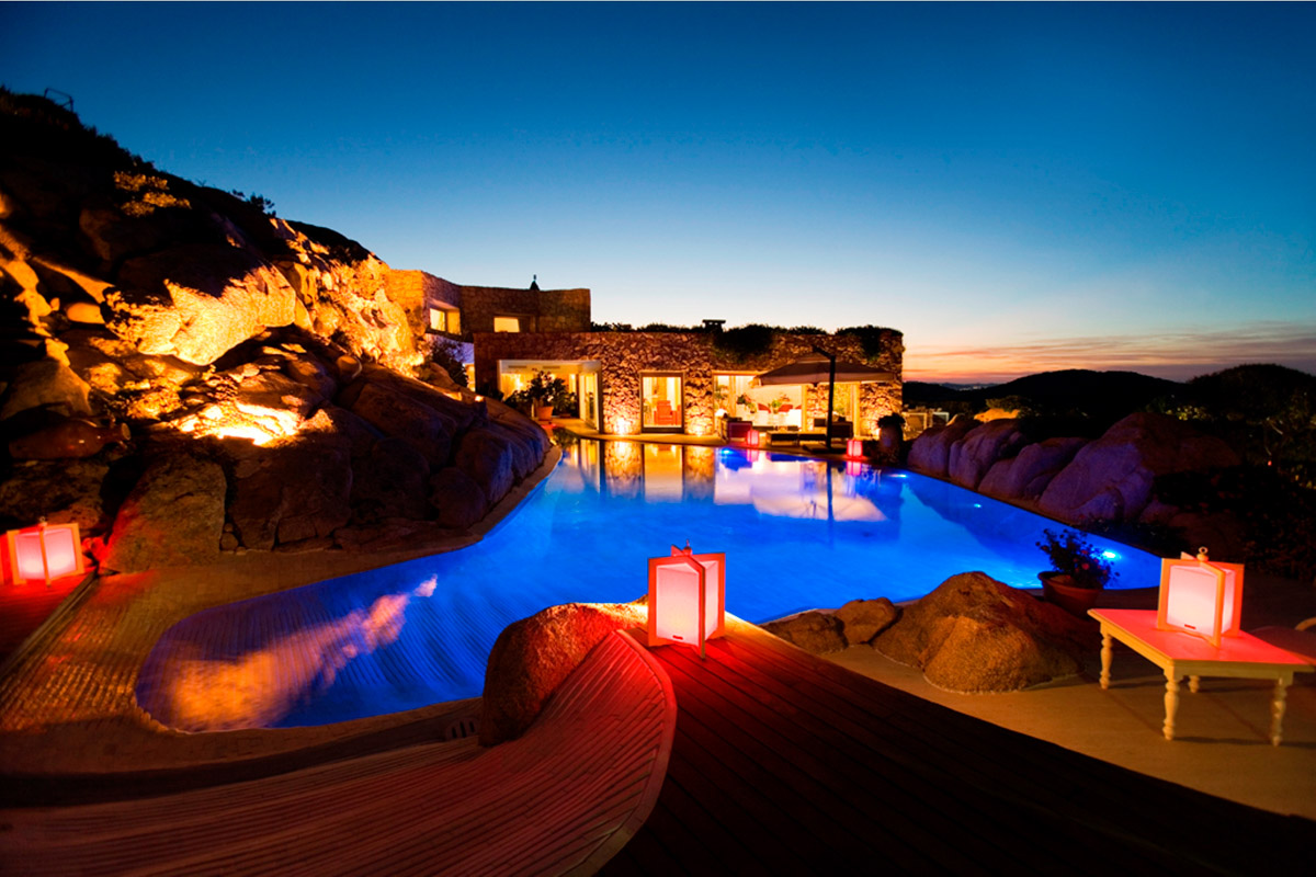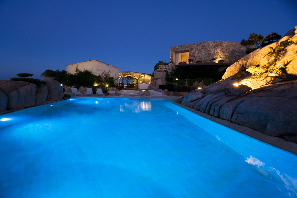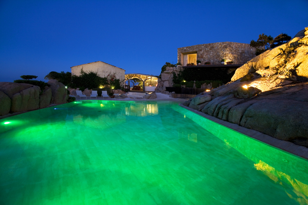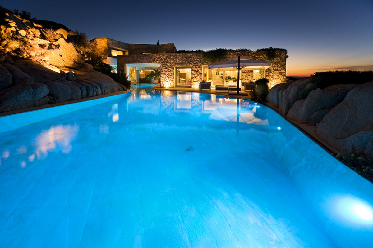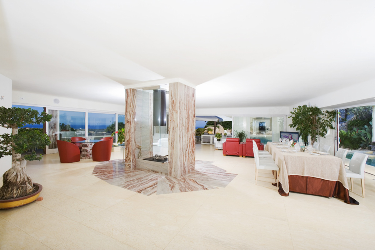 This villa is located on the hill of Porto Cervo, in a dominant position amidst granite rocks and pretty flora just above the Pitrizza white sandy beach. Divided into three parts- a Master Unit, a Tower Major Suite and a Guest House, all with fabulous sea-views, all set in extensive manicured gardens and around a huge centrally located irregular shaped swimming pool. The interiors are crisp, with clean lines and an immaculate finish which when coupled with large floor to ceiling windows creates a spacious, ligh filled, ambient idyll that fuses the sparkling interior and exterior environments.