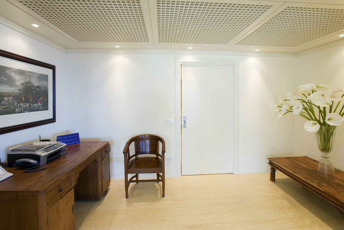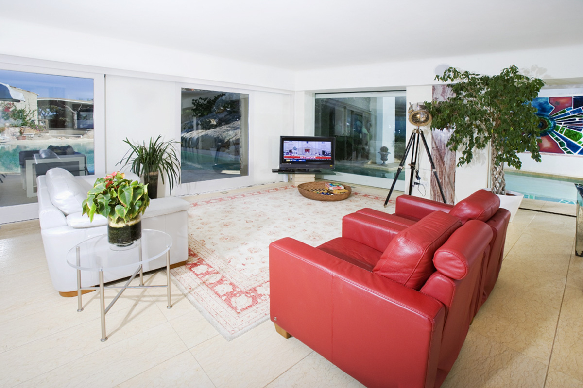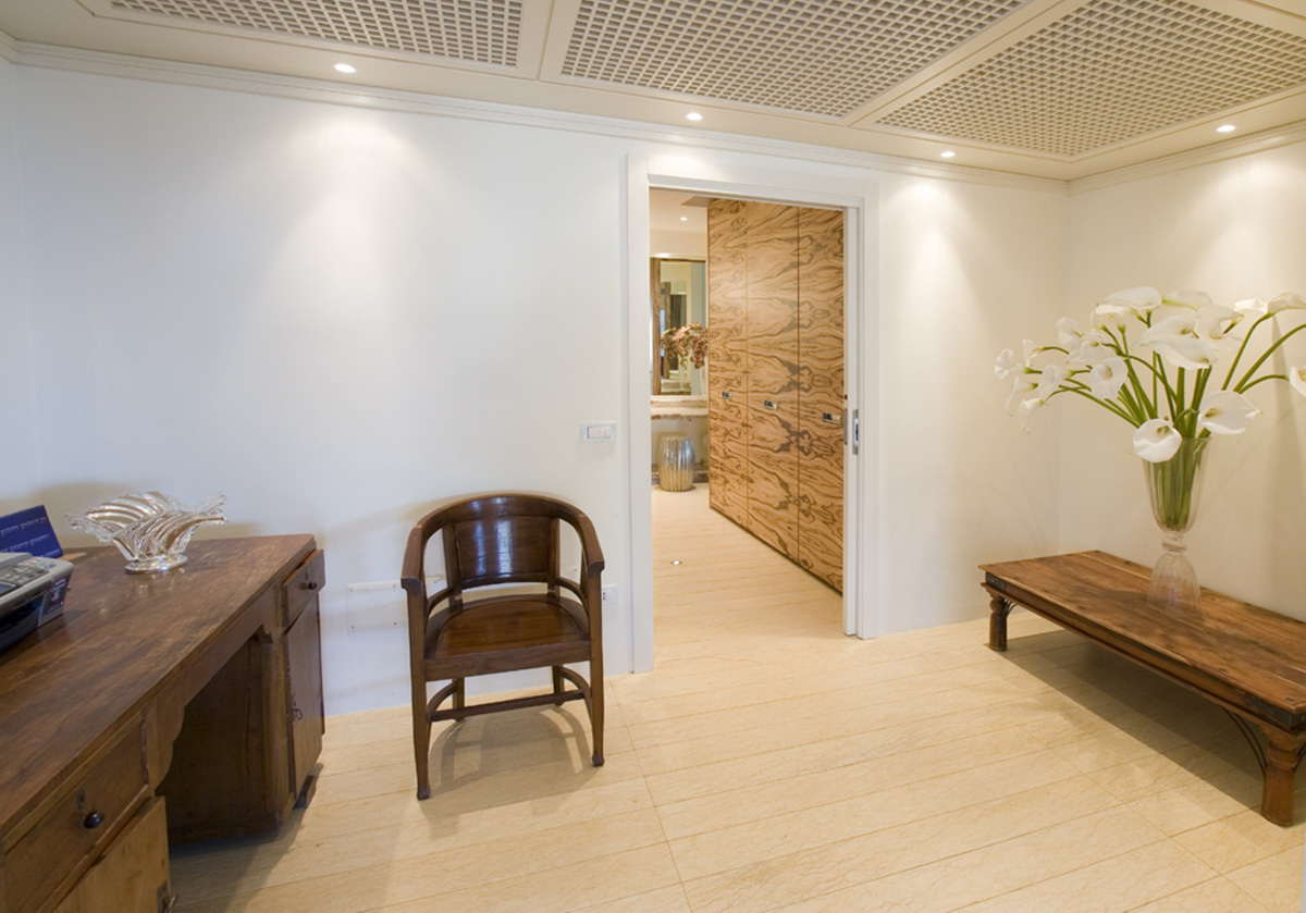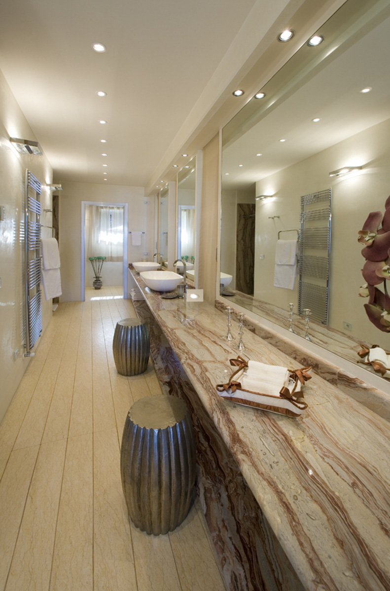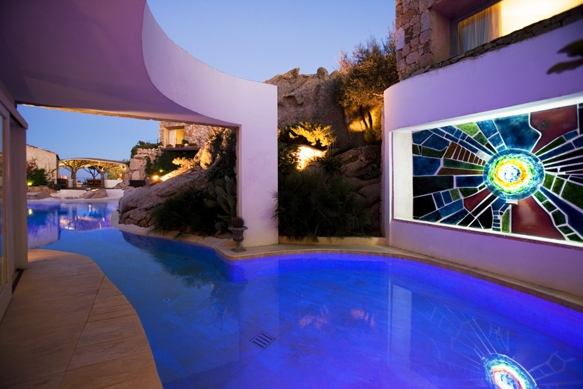 This villa is located on the hill of Porto Cervo, in a dominant position amidst granite rocks and pretty flora just above the Pitrizza white sandy beach. Divided into three parts- a Master Unit, a Tower Major Suite and a Guest House, all with fabulous sea-views, all set in extensive manicured gardens and around a huge centrally located irregular shaped swimming pool. The interiors are crisp, with clean lines and an immaculate finish which when coupled with large floor to ceiling windows creates a spacious, ligh filled, ambient idyll that fuses the sparkling interior and exterior environments.