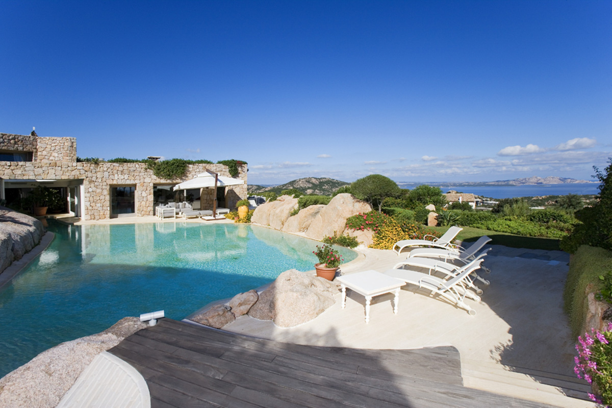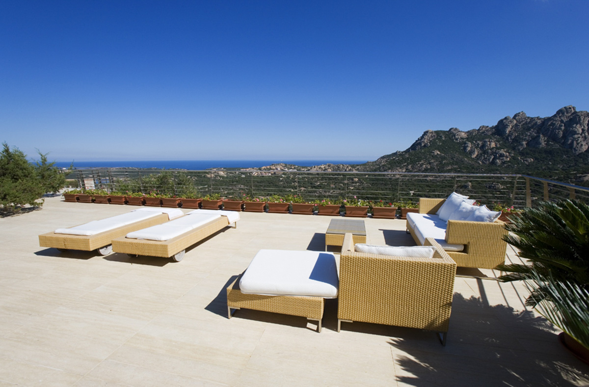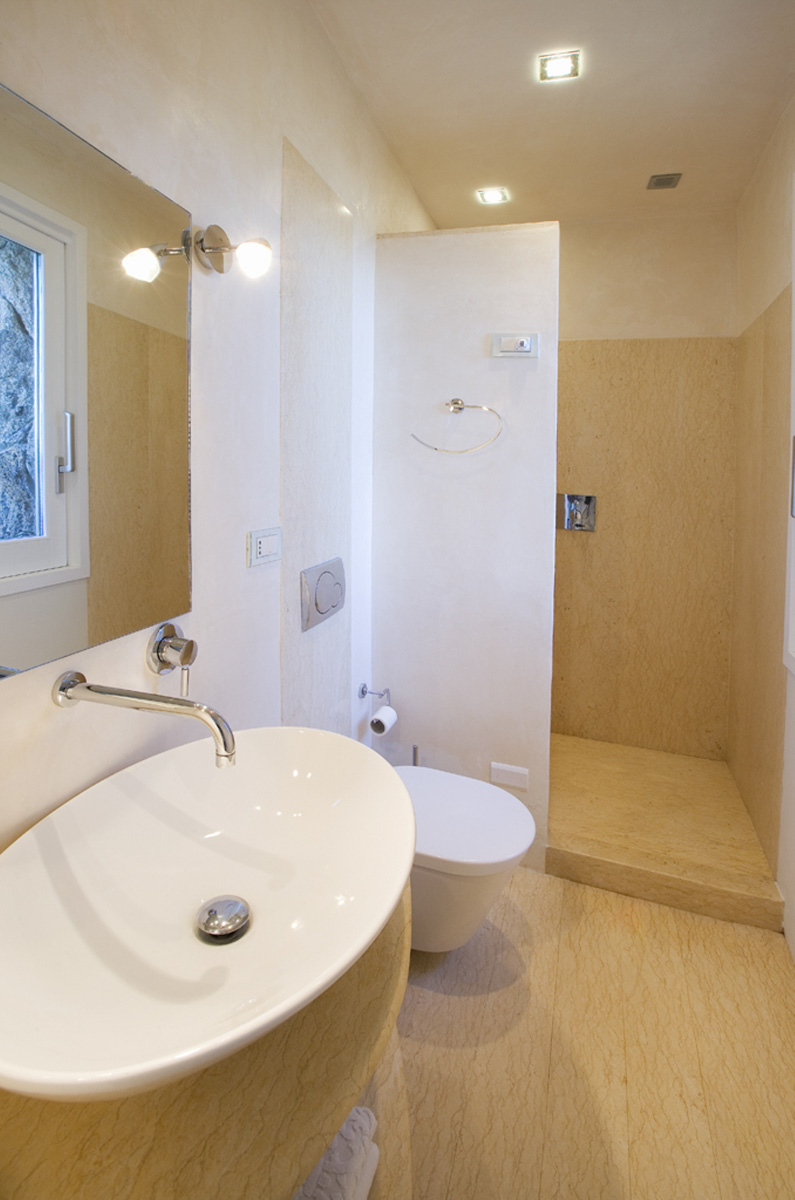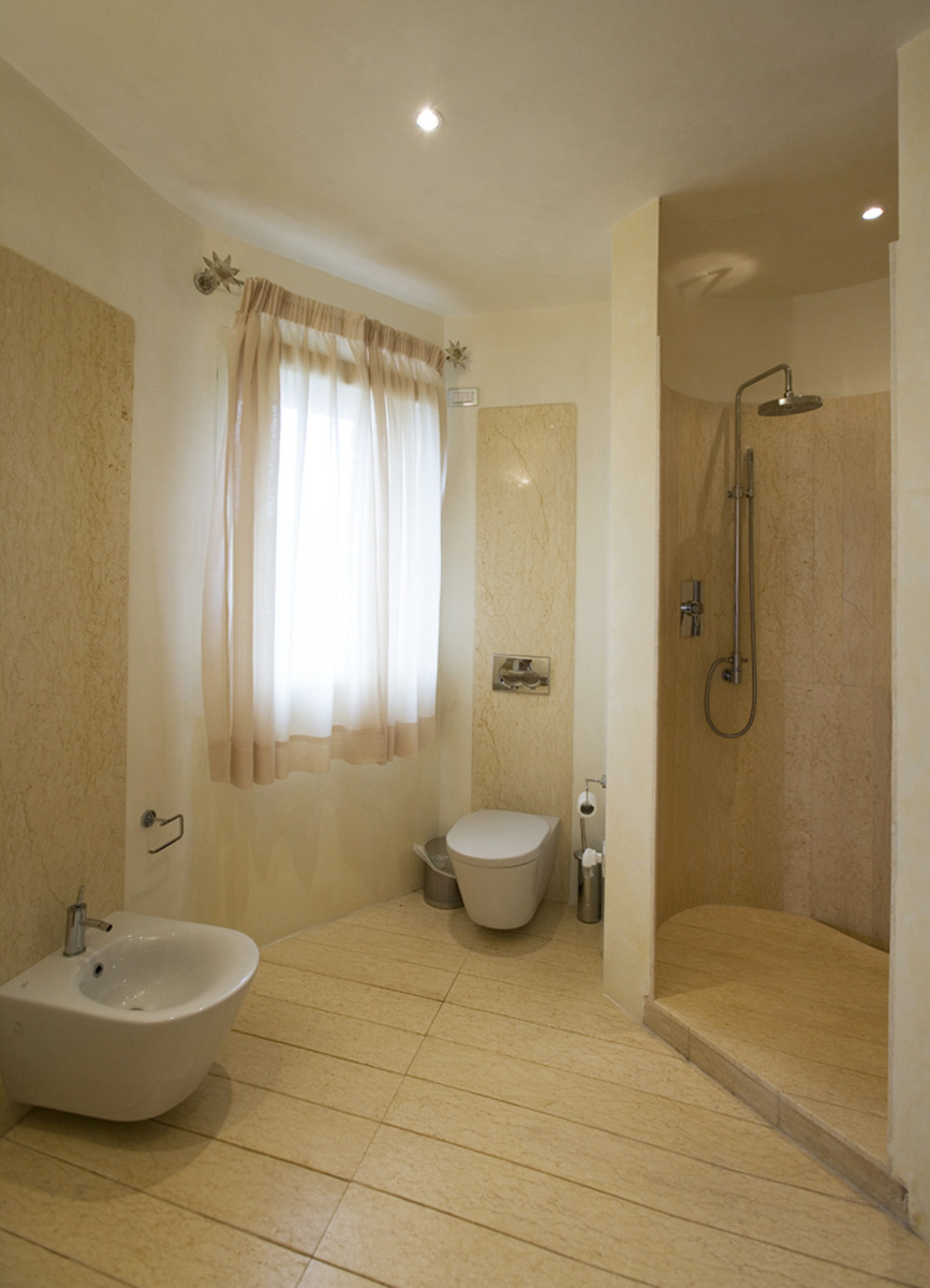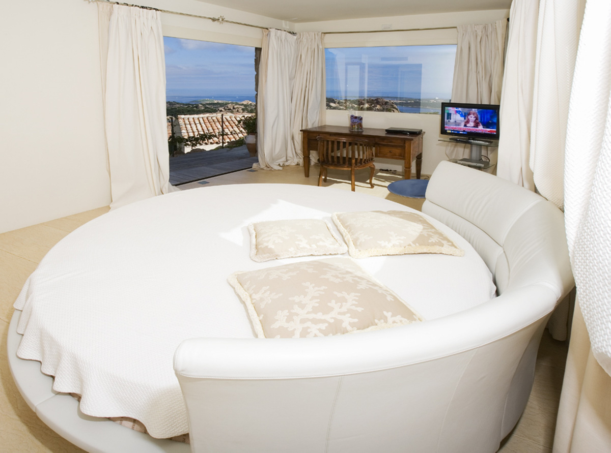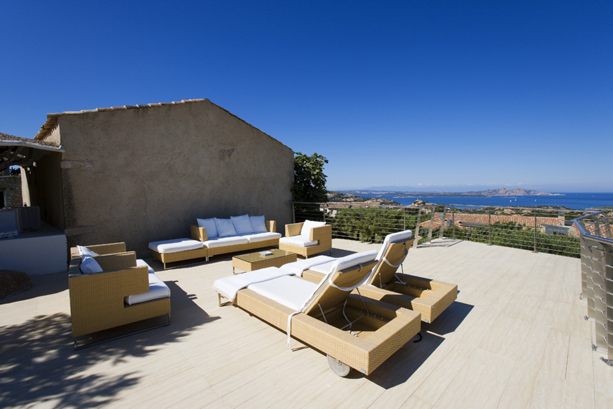 The main villa has one Master suite with King Sized Bed, en-suite bathrooms with rainforest shower and jacuzzi, terrace, sea views, Two Double bedroom suites each with en-suite bathrooms with rainforest shower, one Tower major suite: double bedroom king size, round bed, walk in clost, en-suite bathroom with rainforest shower, 270 degree panoramic sea views. There’s also a guest house: old sardinian shepherd style guest house located at far end of garden and two Twin rooms with en-suite bathrooms with shower, plasma TV, safe 1 extra staff bedroom and bathroom is located near the laundry room.