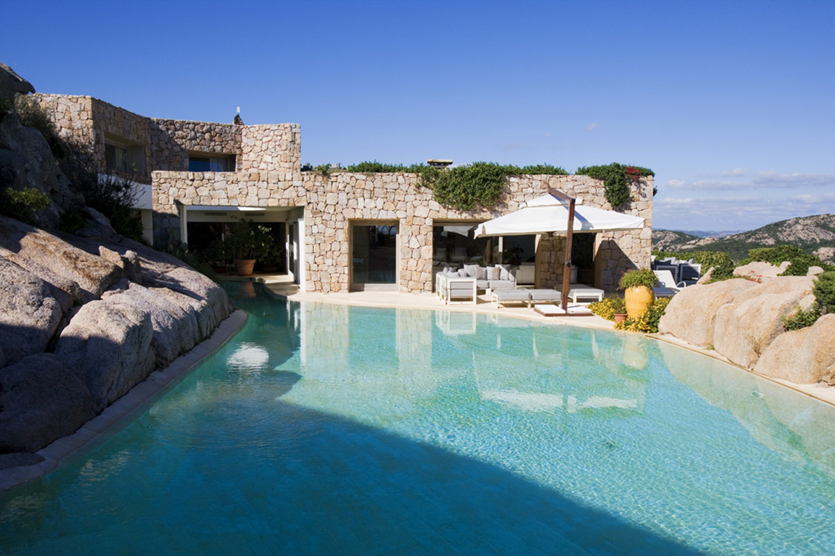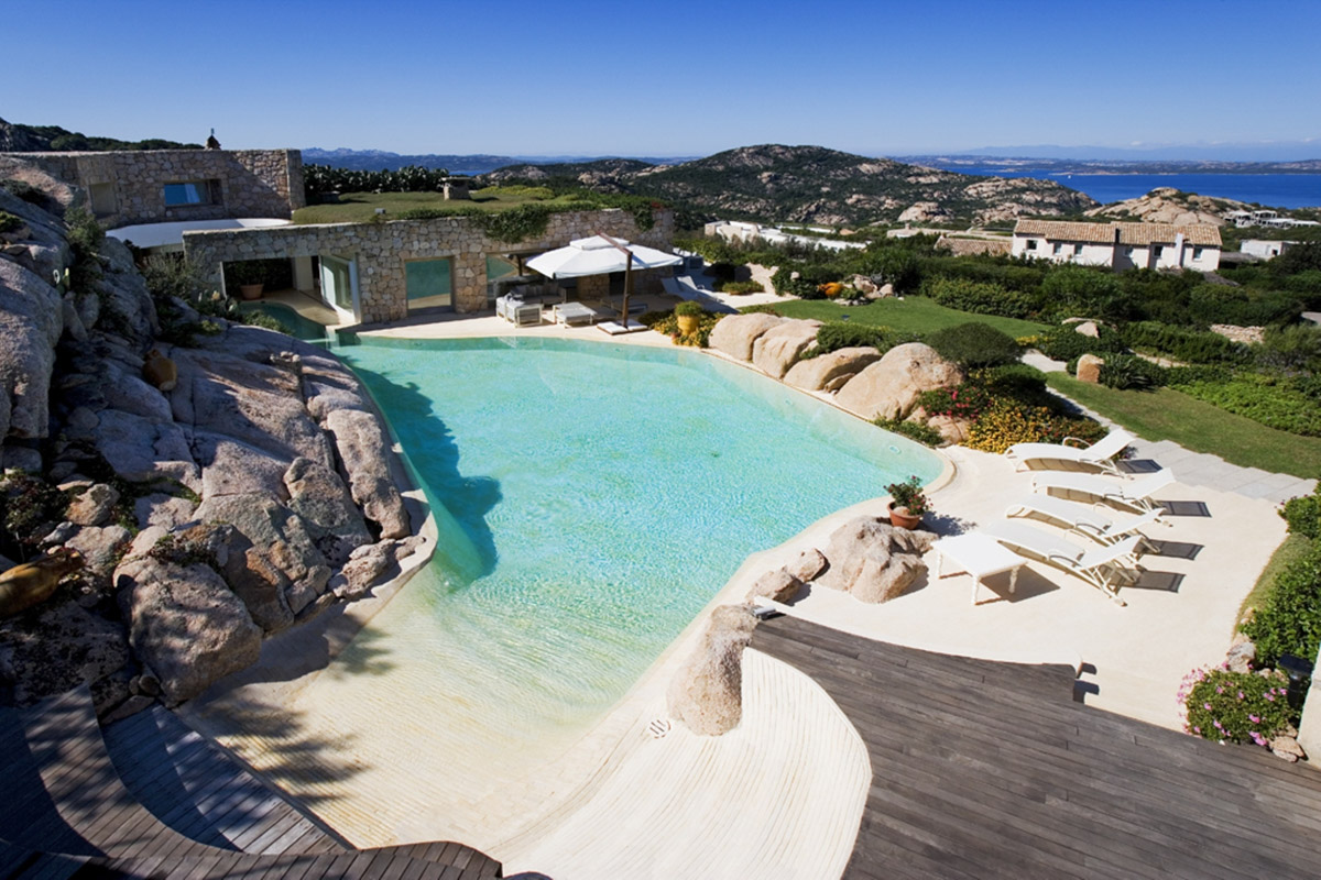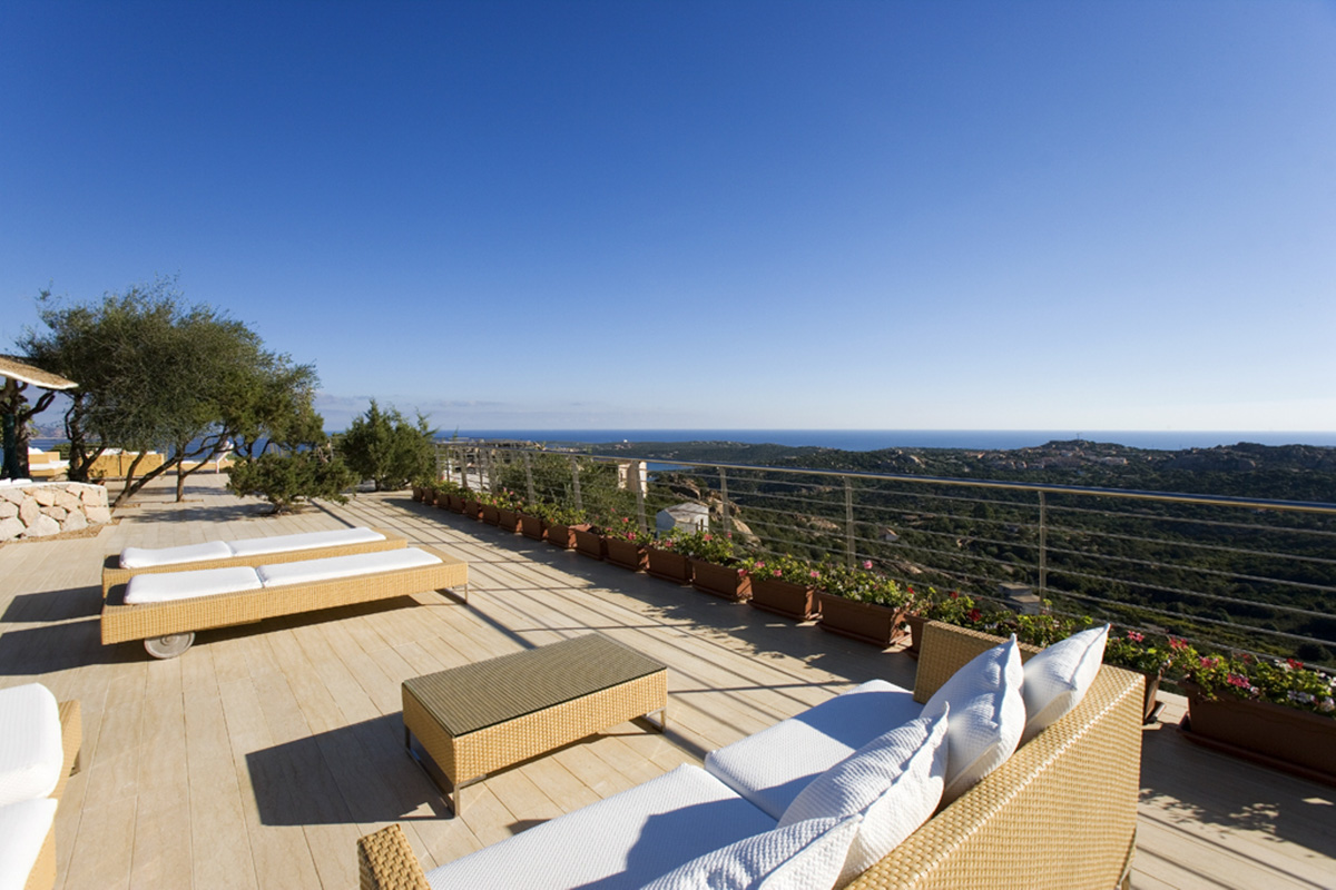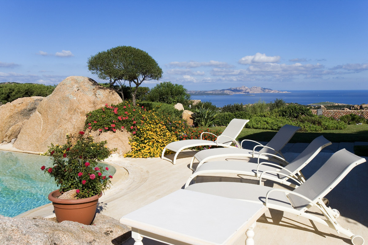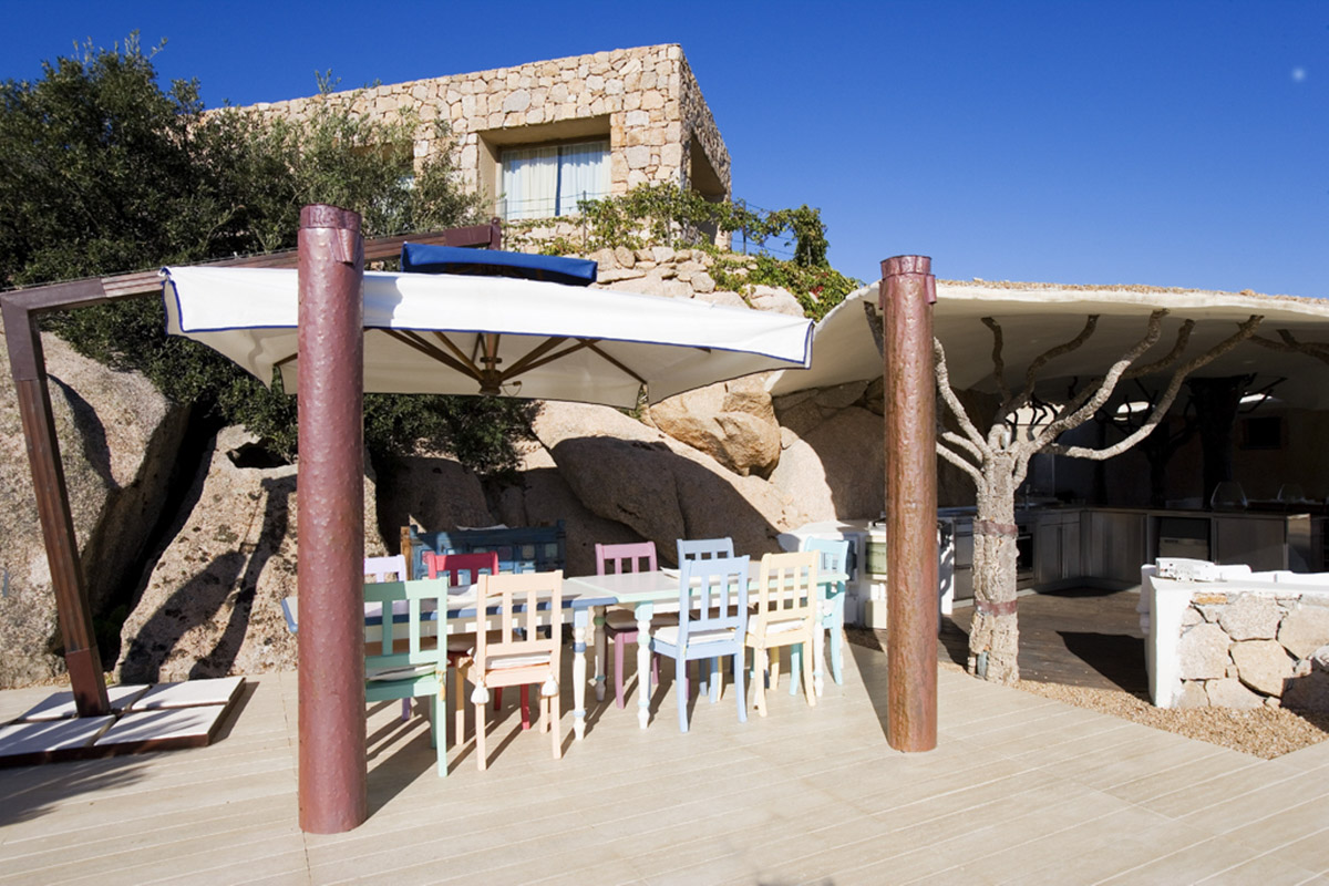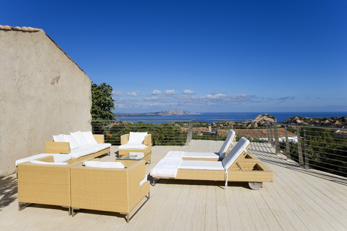 The main villa has one Master suite with King Sized Bed, en-suite bathrooms with rainforest shower and jacuzzi, terrace, sea views, Two Double bedroom suites each with en-suite bathrooms with rainforest shower, one Tower major suite: double bedroom king size, round bed, walk in clost, en-suite bathroom with rainforest shower, 270 degree panoramic sea views. There’s also a guest house: old sardinian shepherd style guest house located at far end of garden and two Twin rooms with en-suite bathrooms with shower, plasma TV, safe 1 extra staff bedroom and bathroom is located near the laundry room.