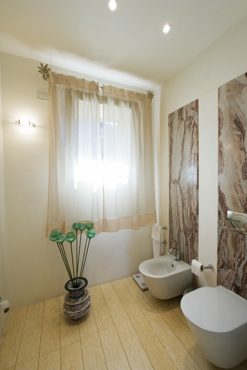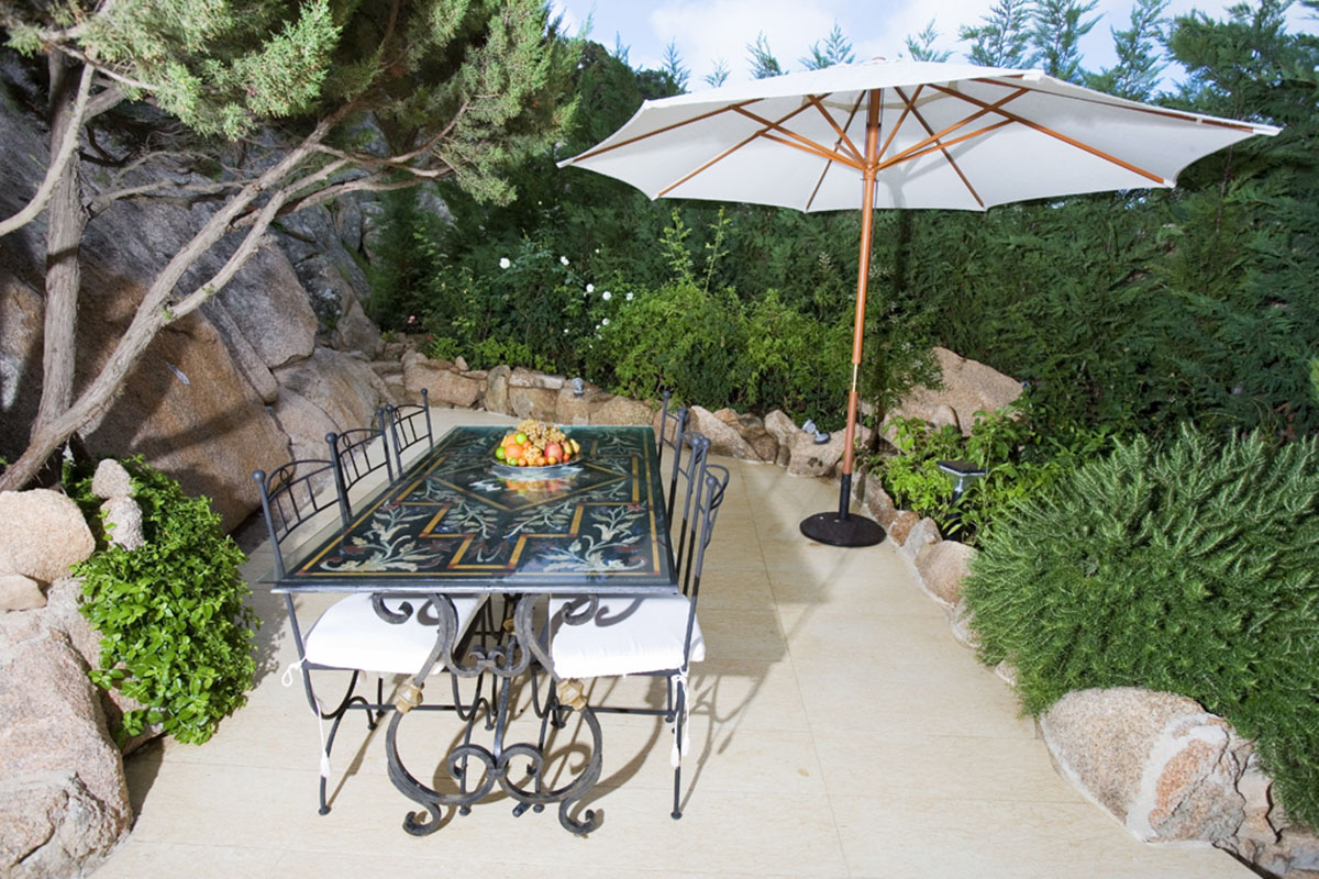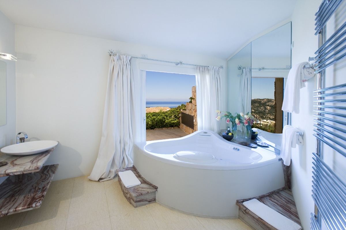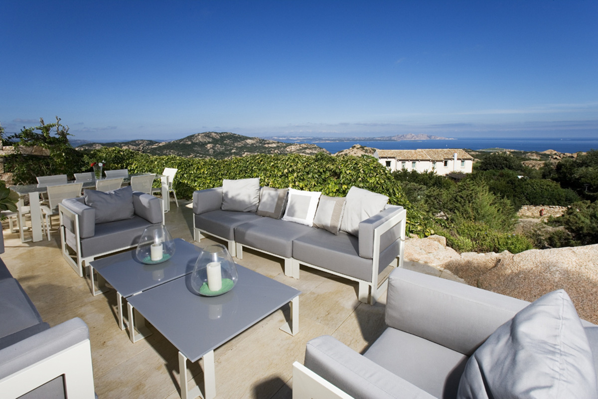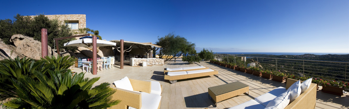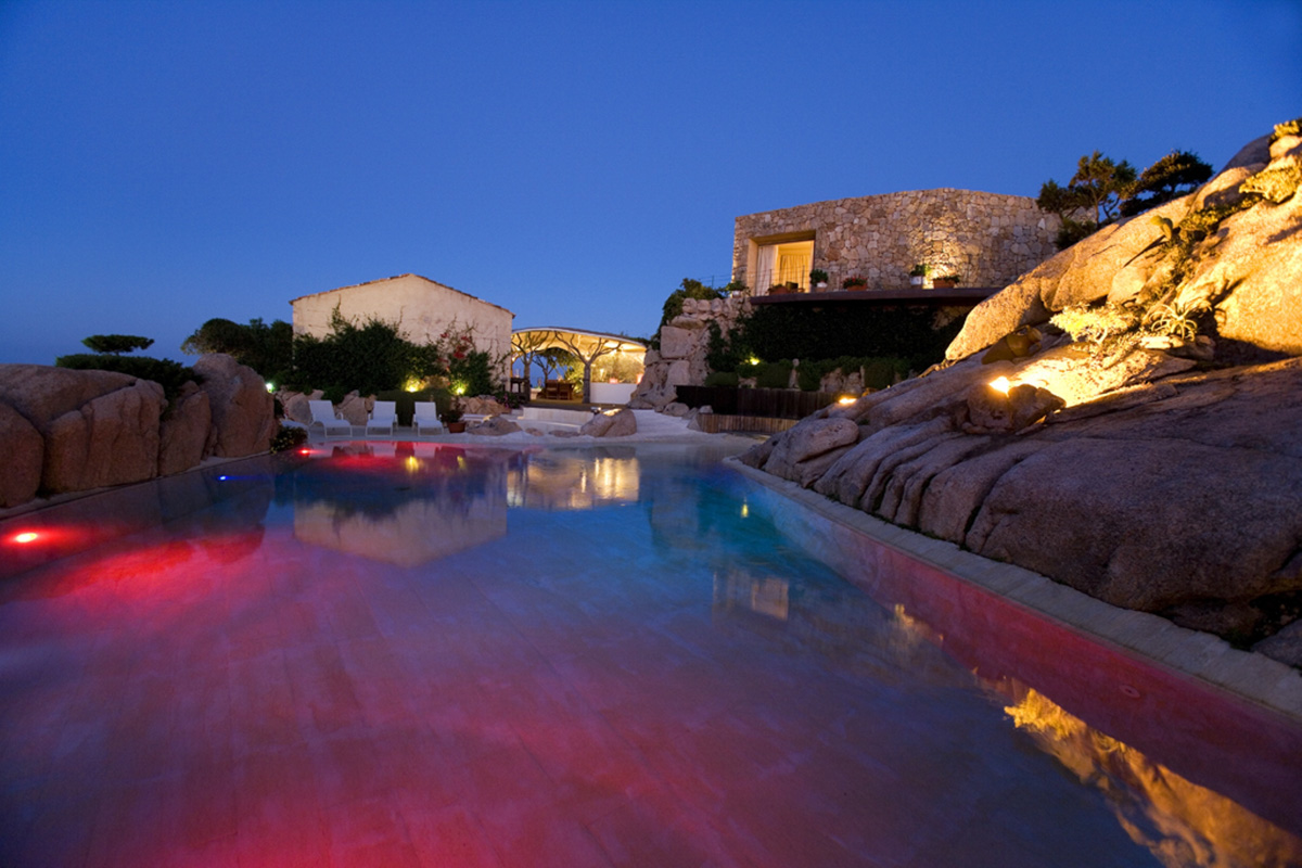 The main villa has one Master suite with King Sized Bed, en-suite bathrooms with rainforest shower and jacuzzi, terrace, sea views, Two Double bedroom suites each with en-suite bathrooms with rainforest shower, one Tower major suite: double bedroom king size, round bed, walk in clost, en-suite bathroom with rainforest shower, 270 degree panoramic sea views. There’s also a guest house: old sardinian shepherd style guest house located at far end of garden and two Twin rooms with en-suite bathrooms with shower, plasma TV, safe 1 extra staff bedroom and bathroom is located near the laundry room.